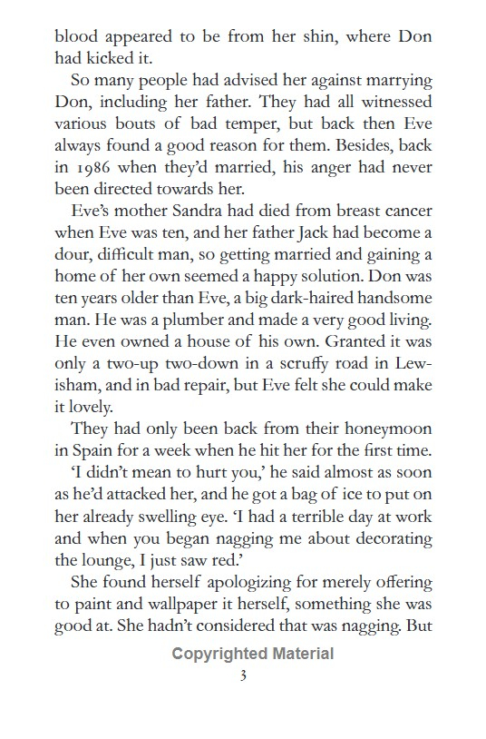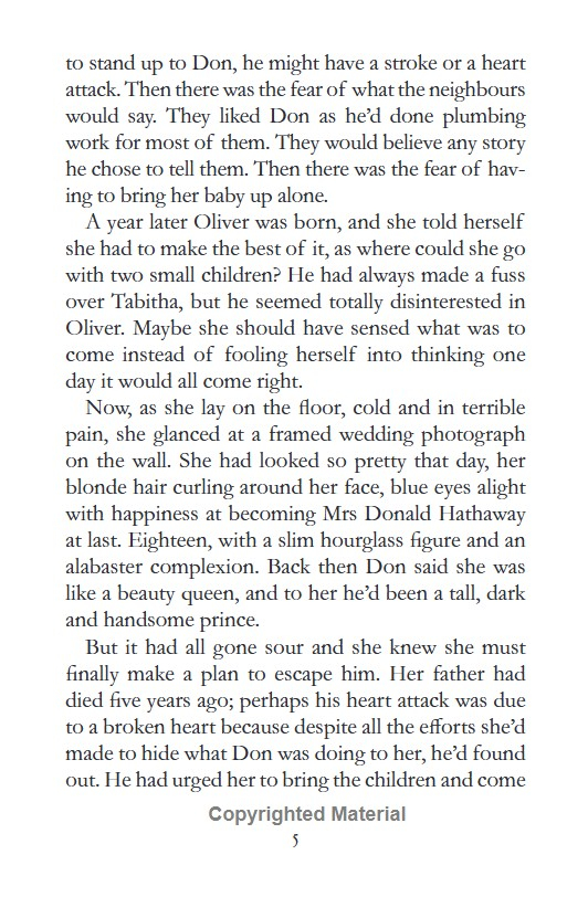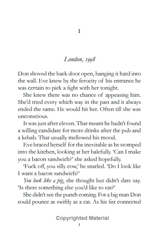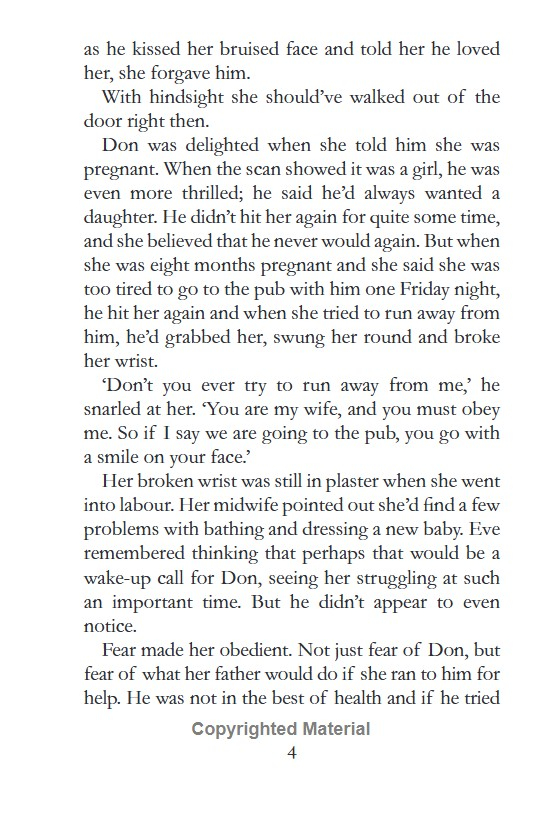 Eve should never have married Don Hathaway. He is a bully. Worse than that, he hurts her.But, after one drunken rage too many, she has the courage to leave him. It's a difficult path, yet she needs to give her children hope for the future.Don, however, is bitter. And getting away entirely from him proves impossible.Until the day, Eve tries to teach him a lesson - and it all goes horribly wrong.Eve loves her children but now she carries a terrible burden that she dares not share. Has she betrayed her and her children's futures?