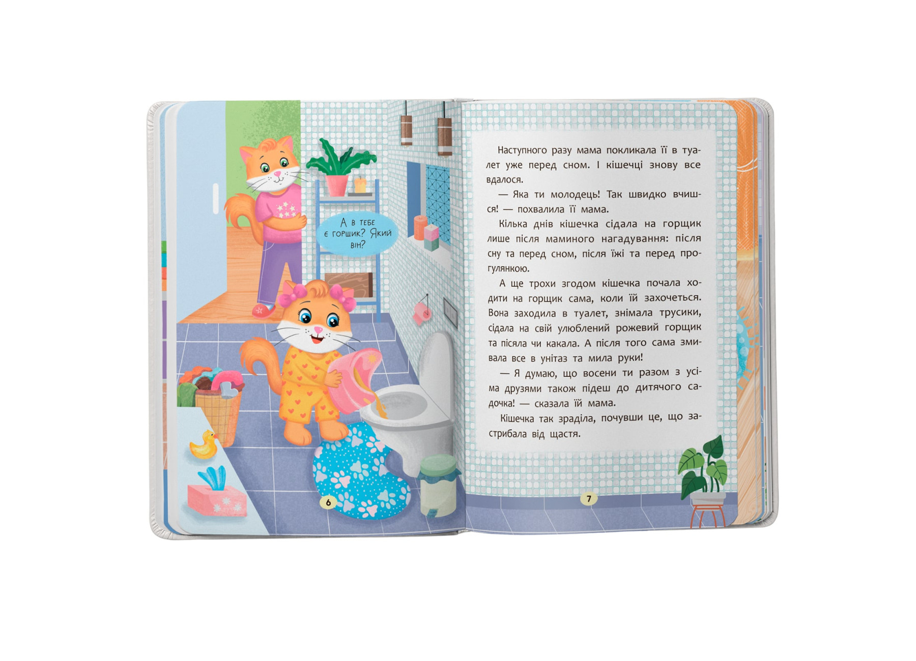 Ця книжка стане вашим надійним помічником у привчанні малюка до горщика. Завдяки яскравим ілюстраціям та добрим історіям, милі герої демонструють, як просто й весело можна відмовитися від підгузків. Вони надихнуть дитину спробувати щось нове, навчатимуть з розумінням і терпінням ставитися до перших труднощів.