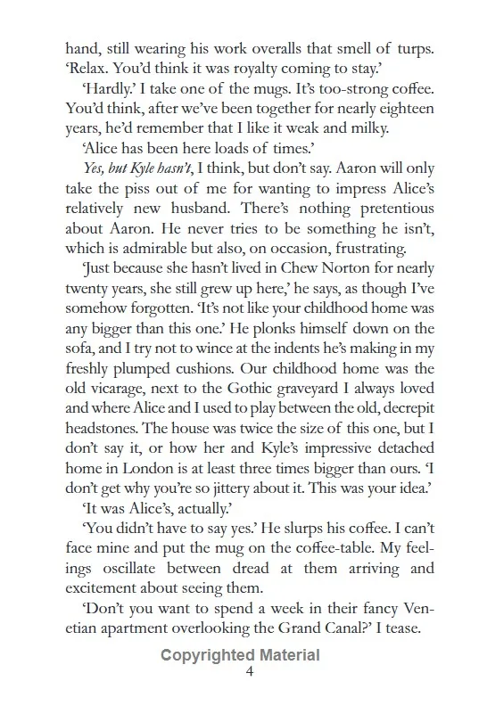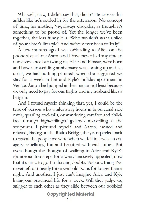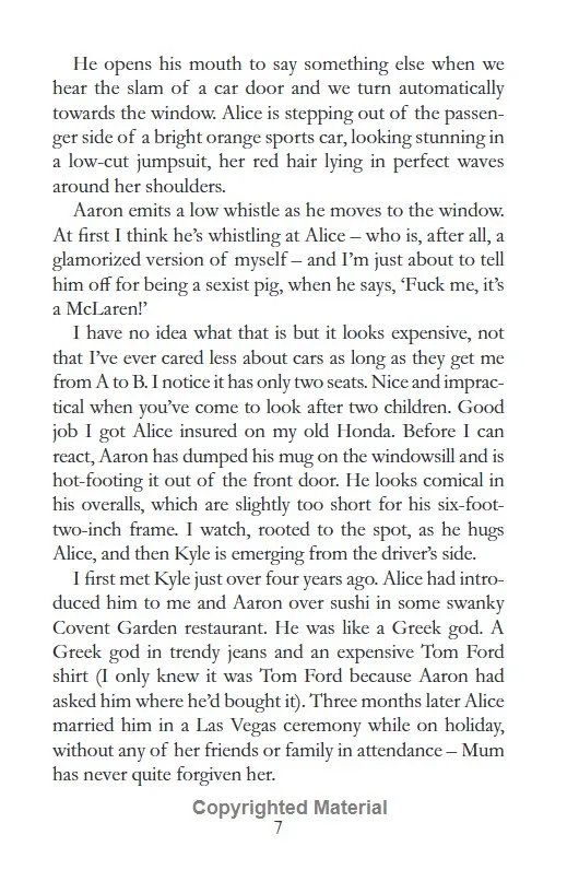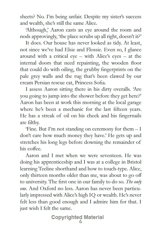 Tasha has always felt in the shadow of her older sister, Alice. Alice is married to wealthy entrepreneur Kyle and has a high-flying career, Tasha is married to her childhood sweetheart and lives in a Bristol suburb with their three-year-old twins.When Alice realises that Tasha is struggling she suggests she come to look after the twins for a week, so Tasha and her husband can enjoy a trip away.But a few days in, it all goes terribly wrong. Tasha receives a phonecall to say Alice is in hospital and Kyle is dead after an intruder broke into their house. A burglary gone wrong, surely. Until a note arrives saying It was supposed to be you...