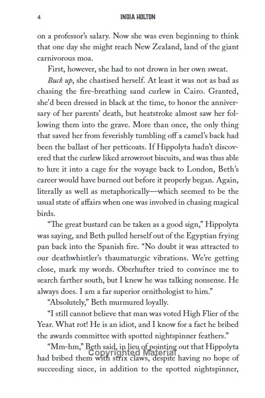 Two rival ornithologists.Seeking one dangerous, beautiful bird.Is the hunt of their lives also how they find the love of their lives?Professor Beth Pickering is on the verge of finally capturing the rare Deathwhistler bird when Professor Devon Lockley swoops in, stealing both her bird and her imagination.For his part, Devon has never been more smitten than when he first set eyes on Beth.When a competition to become Birder of the Year by capturing an endangered caladrius bird is announced, Beth and Devon are forced to team up to have any chance of winning.They're hunting the rarest of species. But will these rivals discover something even more endangered – true love . . .