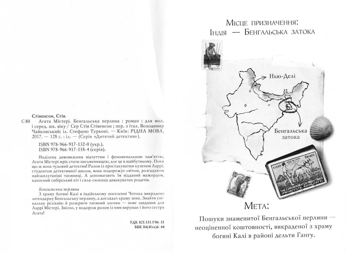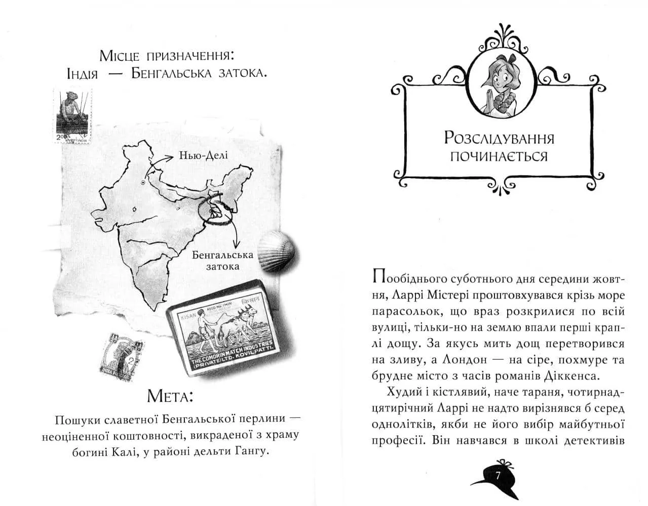 Наділена дивовижним відчуттям і феноменальною пам’яттю, Агата Містері мріє стати письменницею, але це в майбутньому. Поки що ж вона чудовий детектив! Разом із простакуватим кузеном Ларрі, студентом детективної школи, вона подорожує світом, розгадуючи найзаплутаніші таємниці. А допомагають їм відданий мажордом, капосний сибірський кіт і сила-силенна дивакуватих родичів.Бенгальська перлинаЗ храму богині Калі в індійському поселенні Чотока викрадено легендарну Бенгальську перлину, а доглядач храму зник. Знайти унікальну реліквію й розкрити таємний злочин — нове завдання для Ларрі Містері. Звісно, у подорож разом із ним вирушає і його сестра Агата!