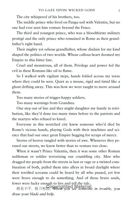 Коли Антоній, другий принц Риму, розкриває силу Жуїнґ, вона стає тим, чого найбільше боялася — ідеальним убивцею. Але коли напруга наростає, а в народі прокидається дух спротиву, Жуїнґ вже не може заплющувати очі: мир для Ер-Ланґа означає смерть. І не факт, що вона зможе її прийняти.