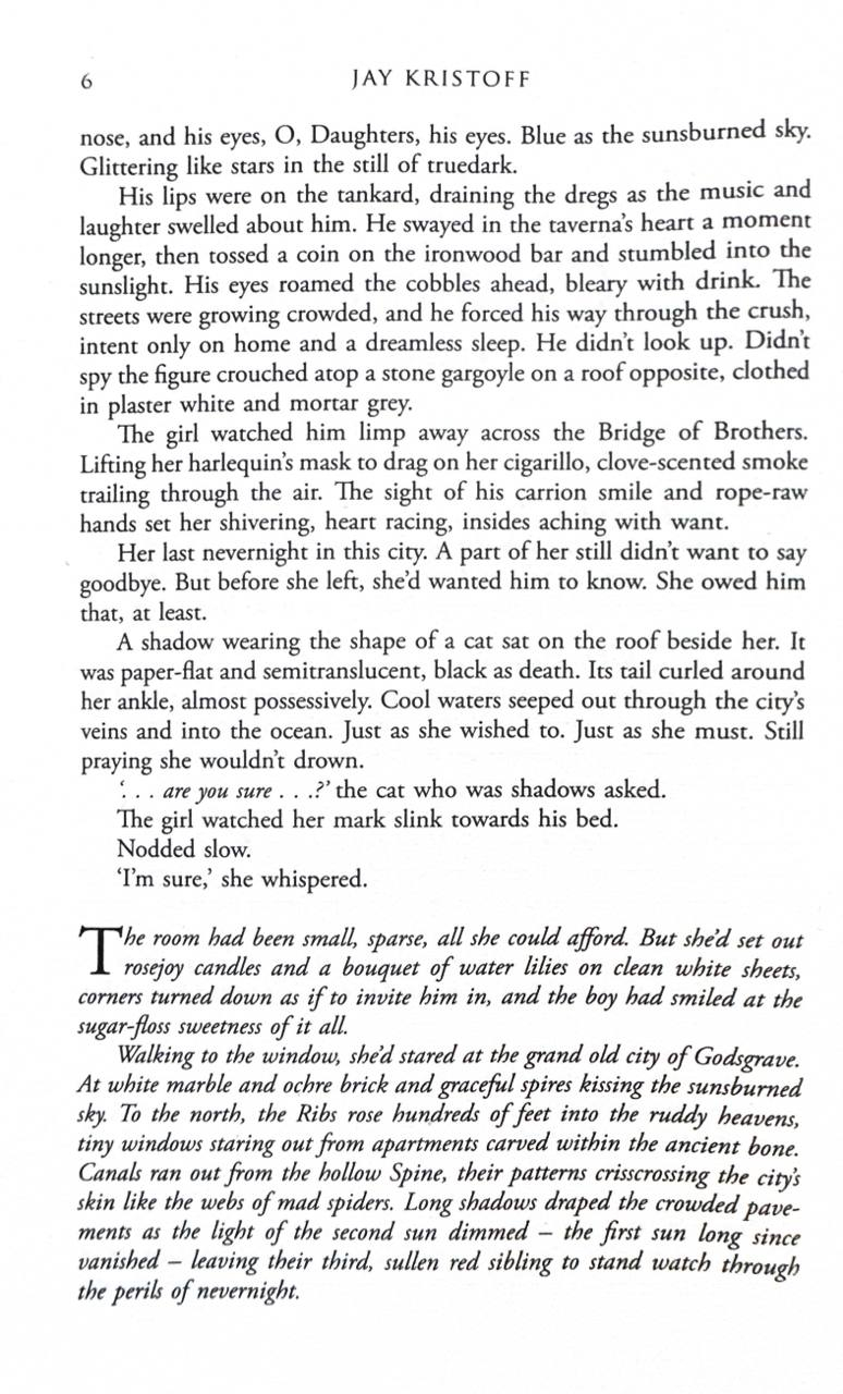 From New York Times bestselling author, Jay Kristoff, comes a dangerous new fantasy world and a heroine edged in darkness.