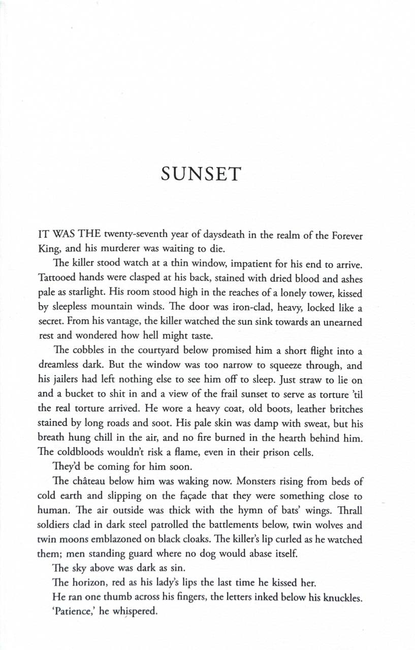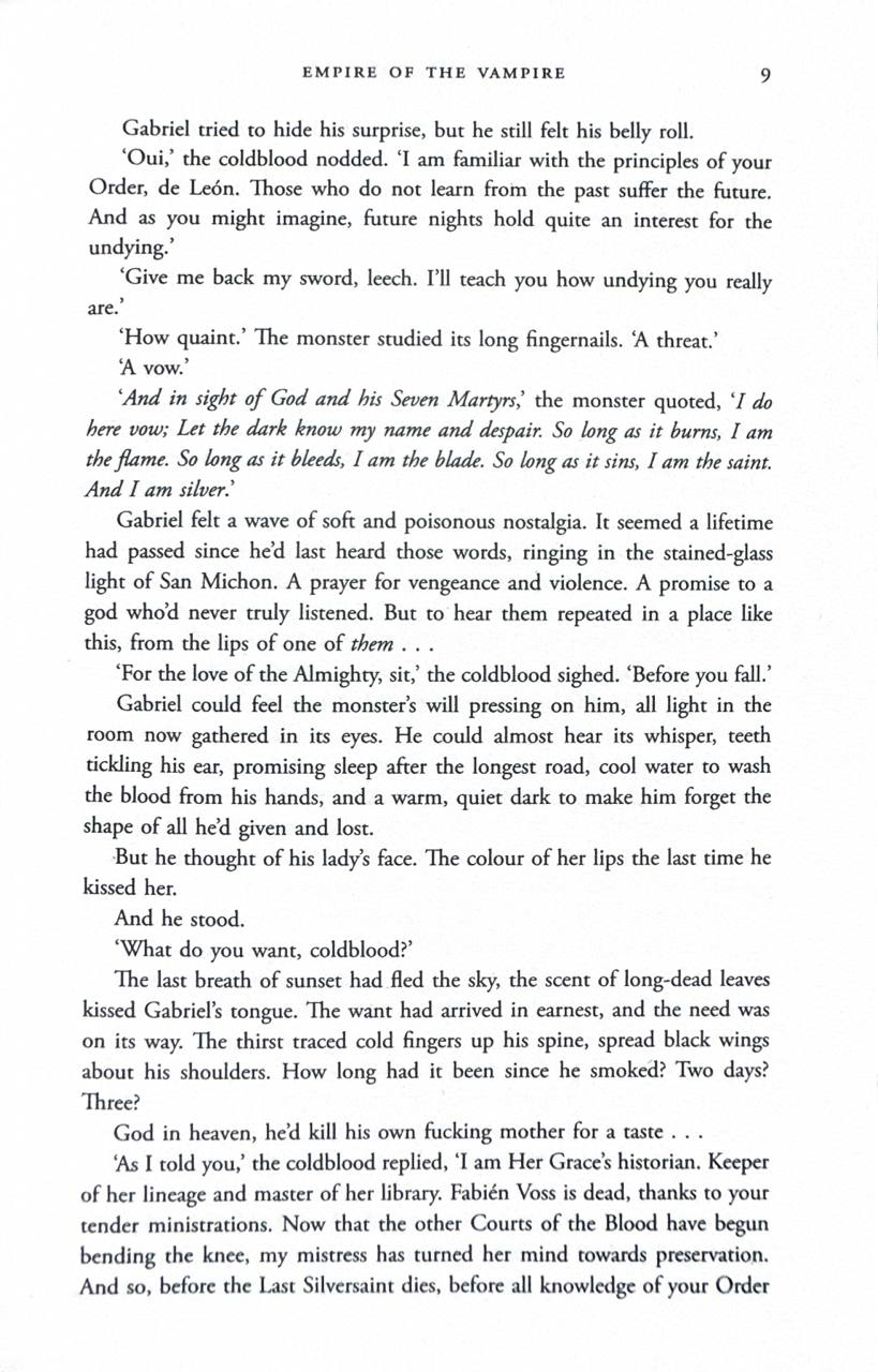 It has been twenty-seven long years since the last sunrise. Ever since, vampires have waged war against humanity building their eternal empire even as they tear down our own. Gabriel de León, half man, half monster, and last remaining silversaint - a sworn brother of the holy Silver Order dedicated to defending the realm from the creatures of the night - is all that stands between the world and its end. Imprisoned by the very monsters he has vowed to destroy Gabriel is forced to tell his story - a story of legendary battles and forbidden love, of faith lost and friendships won, of the War of the Blood and the Forever King and the quest for humanity's last remaining hope: The Holy Grail.