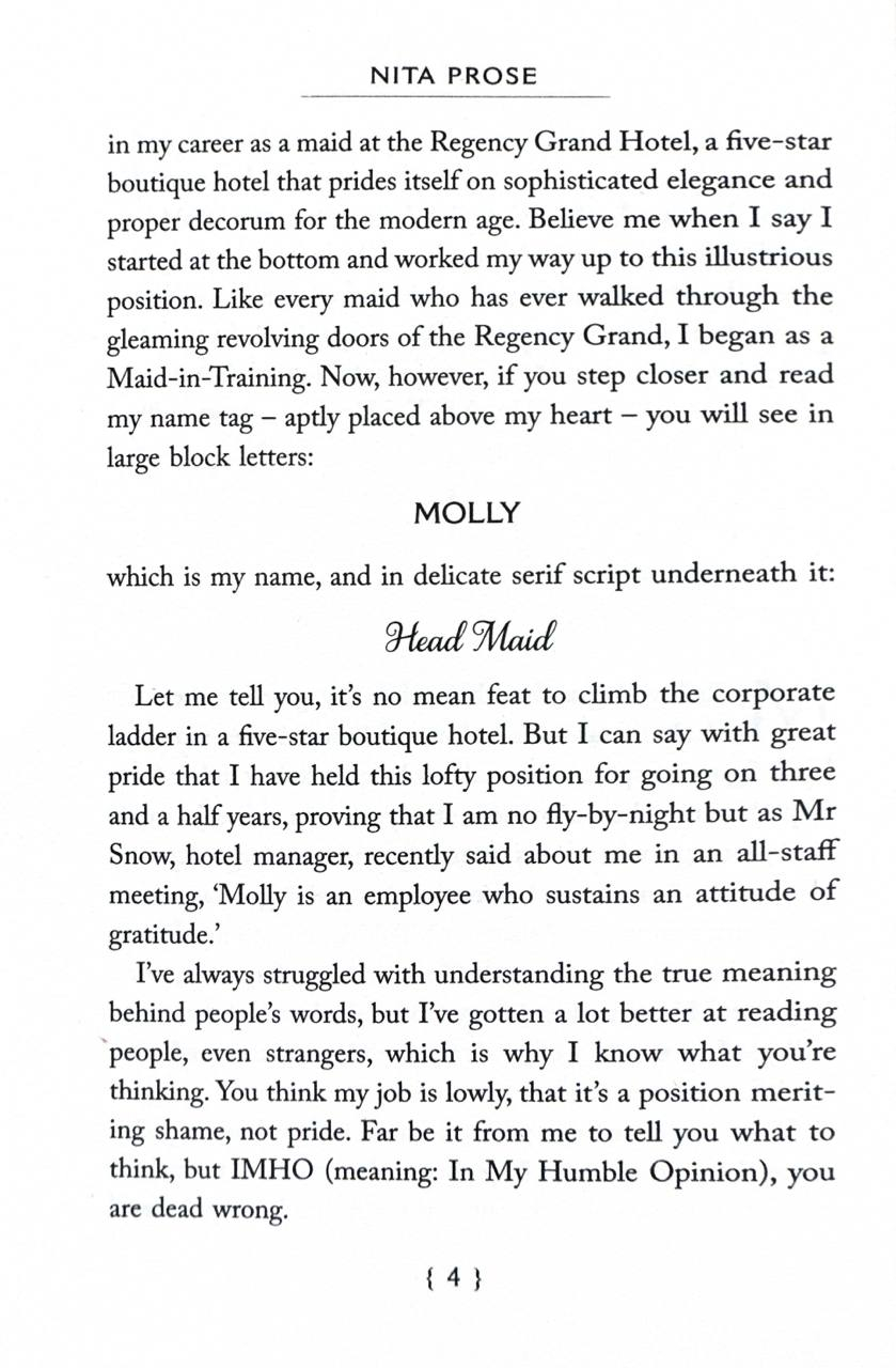 Її талант до прибирання, бездоганні манери та любов до порядку допомогли їй піднятися кар’єрними сходами до посади головної покоївки у п’ятизірковому готелі. Її життя здається ідеальним... поки все не руйнується в одну мить.