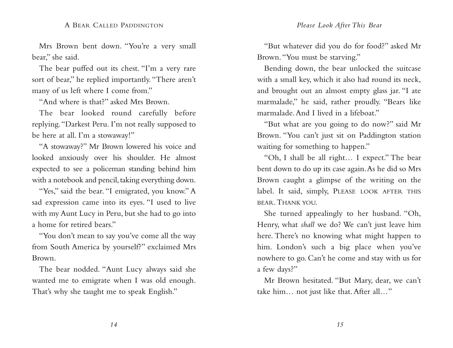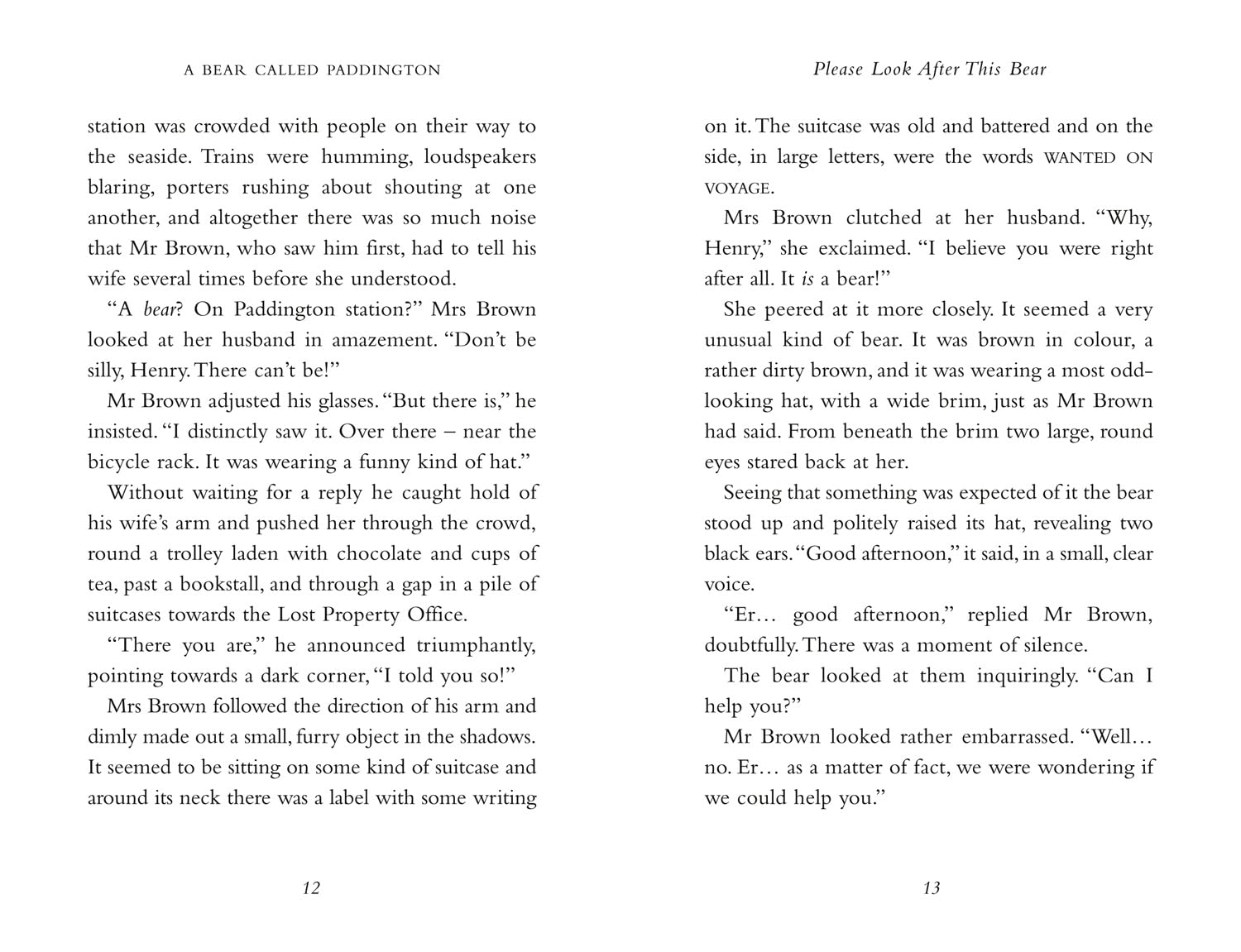 "A bear on Paddington Station?" said Mrs Brown in amazement. "Don't be silly - there can't be."