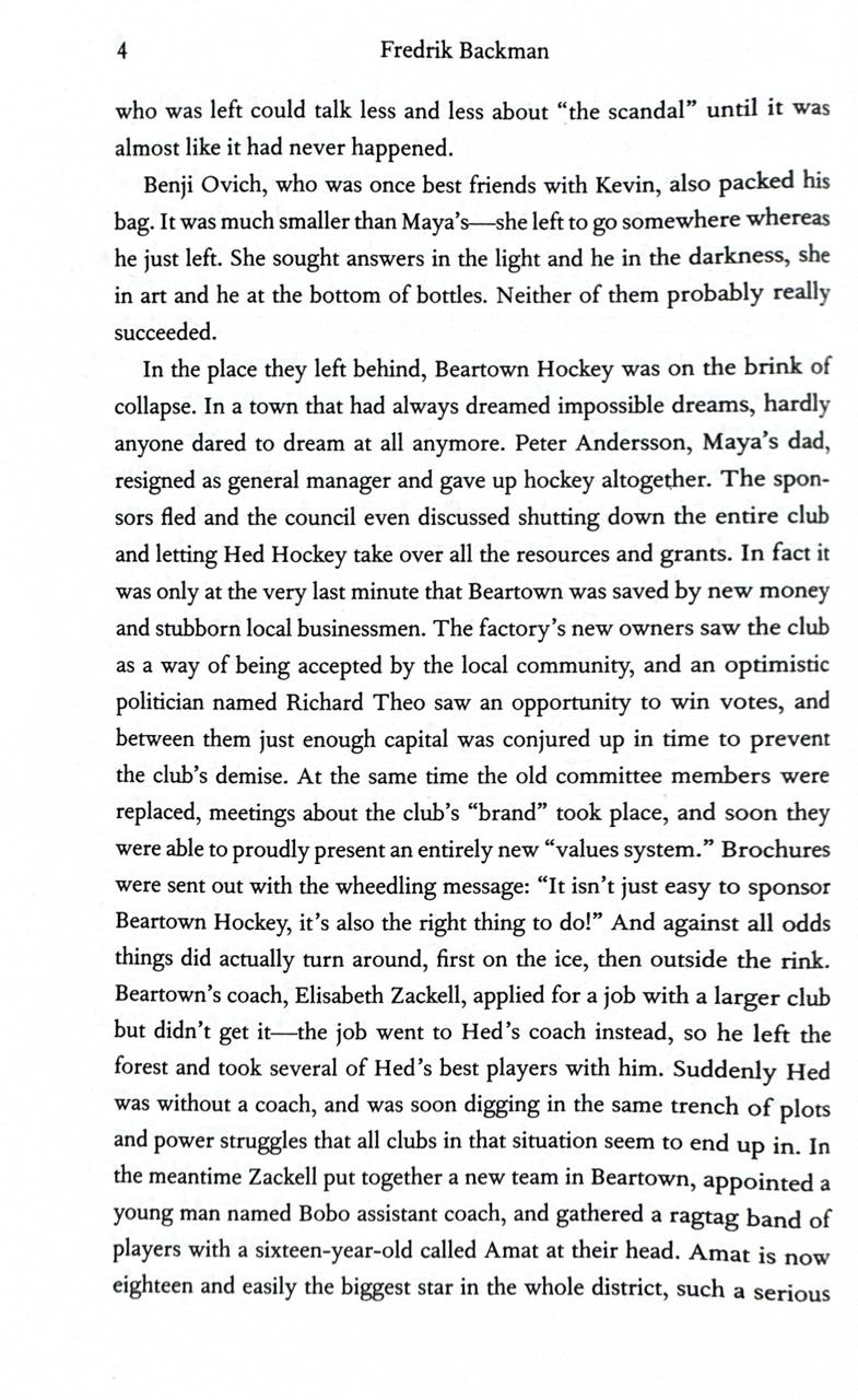 All the while, a fourteen-year-old boy grows increasingly alienated and is determined to take revenge on the people he holds responsible for his sister's death. He has a pistol and a plan that will leave Beartown with a loss that is almost more that it can stand.