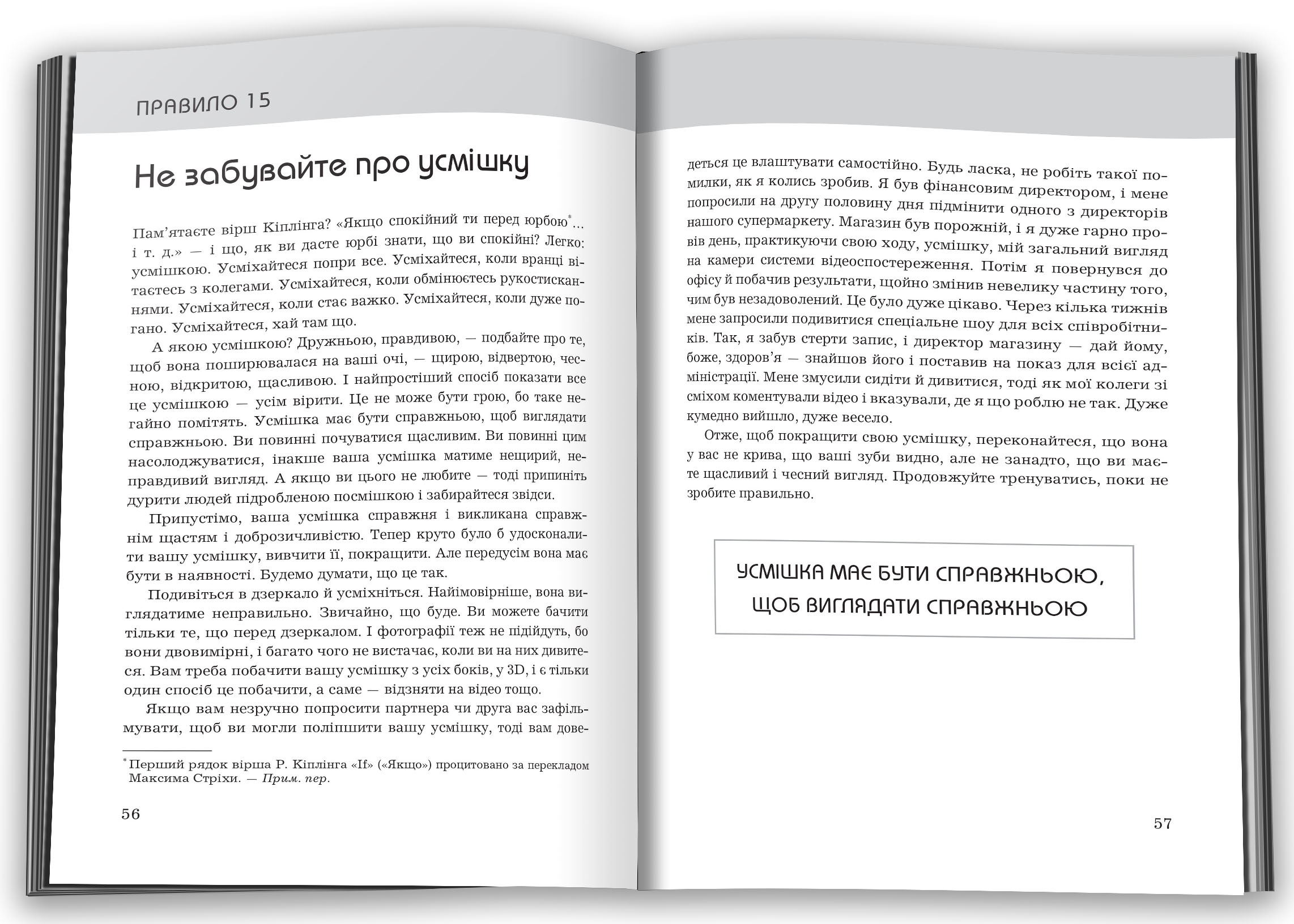 Що робить книгу унікальною — це легкий стиль викладу, велика доза гумору, конкретні й чіткі принципи. Усі поради — життєво перевірені й релевантні для сучасного робочого простору. Завдяки цьому вона рекомендована як новачкам, так і досвідченим фахівцям.
