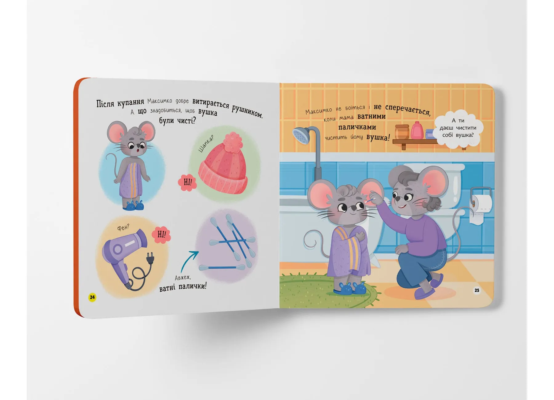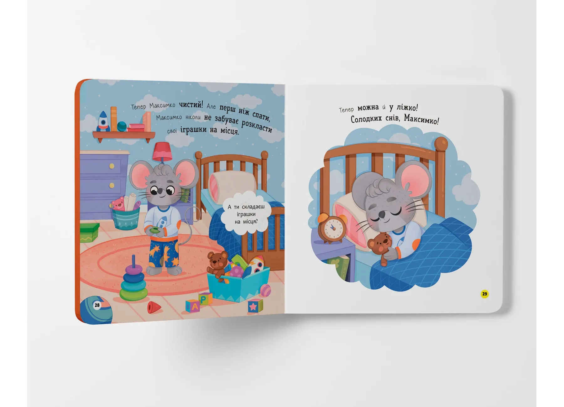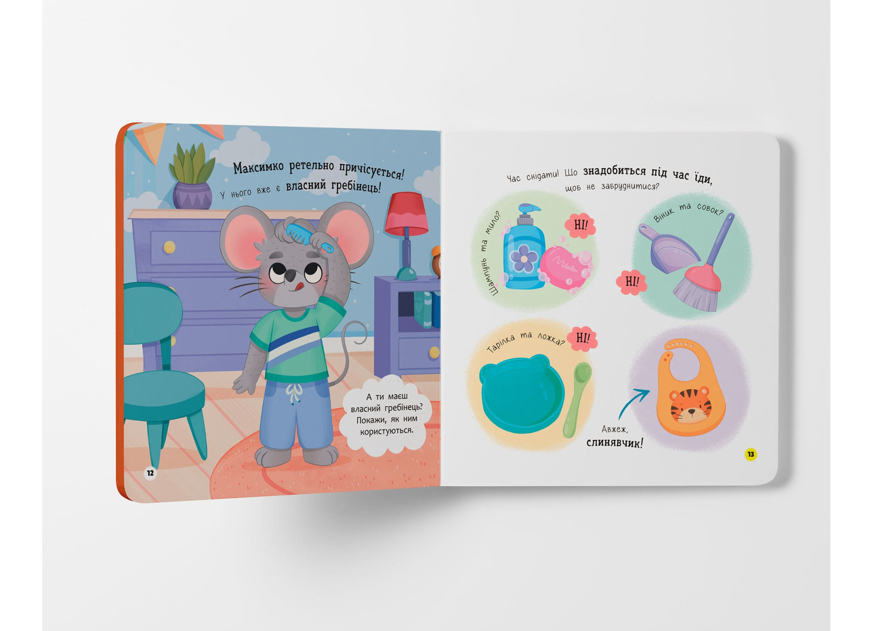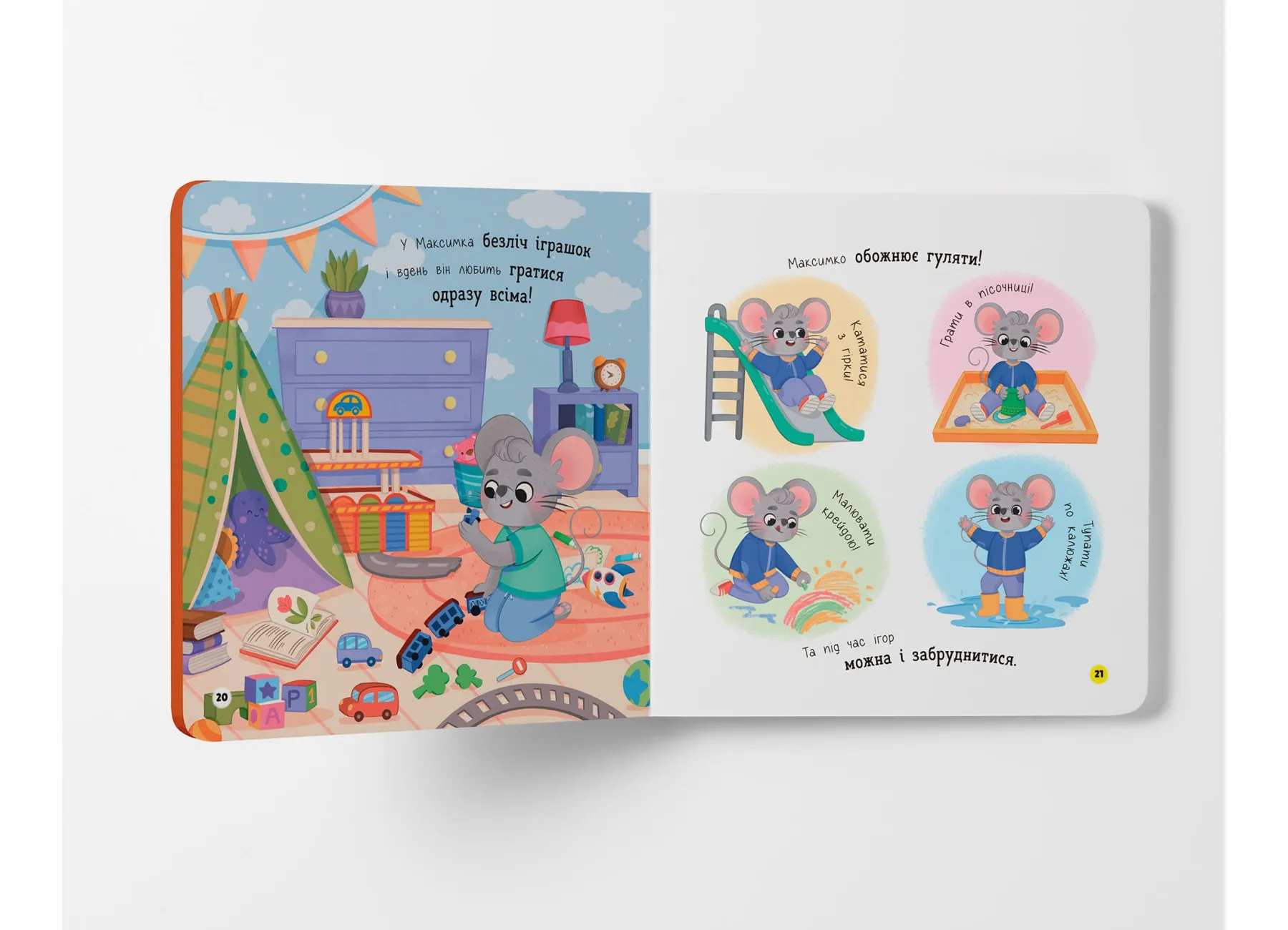 На кожній сторінці малюк зустрічатиме веселого персонажа — мишеня Максимка, який охайно вмивається, чистить ручки, дбає про чистоту свого одягу, підстригає нігтики й підтримує порядок у своїй кімнатці. Таке подання матеріалу спонукає дитину наслідувати поведінку героя, засвоюючи важливі щоденні ритуали.