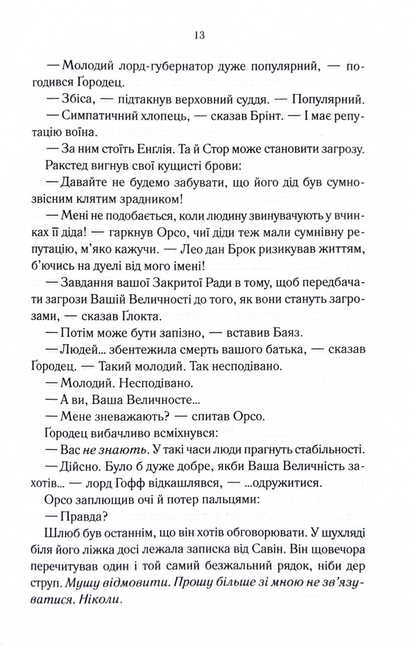 Політична напруга наростає, і змови охоплюють усі верстви суспільства. Орсо, принц і спадкоємець, намагається зберегти рівновагу в небезпечному світі, де кожен борг може коштувати життя. Його шлях – це болісний пошук виходу з смертельного лабіринту політичних пасток.