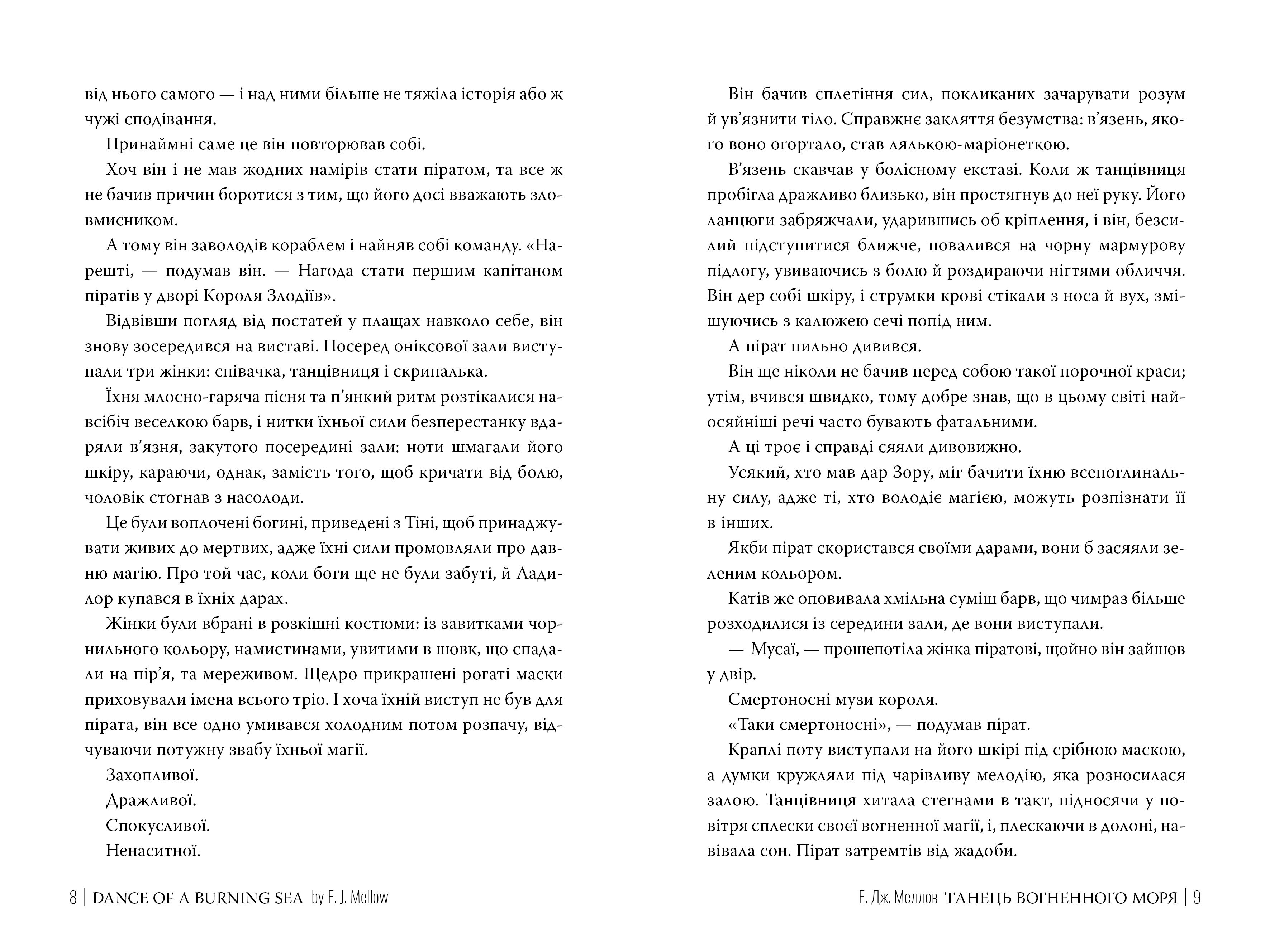 У світі фентезі Аадилору, де магія, пристрасті та піратські інтриги живуть пліч-о-пліч, книга Танець вогненного моря стає справжнім бестселером серед поціновувачів романтичного фентезі. Це друга частина популярного циклу Мусаї, авторкою якого є талановита Е.Дж. Меллов.
