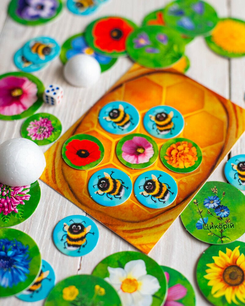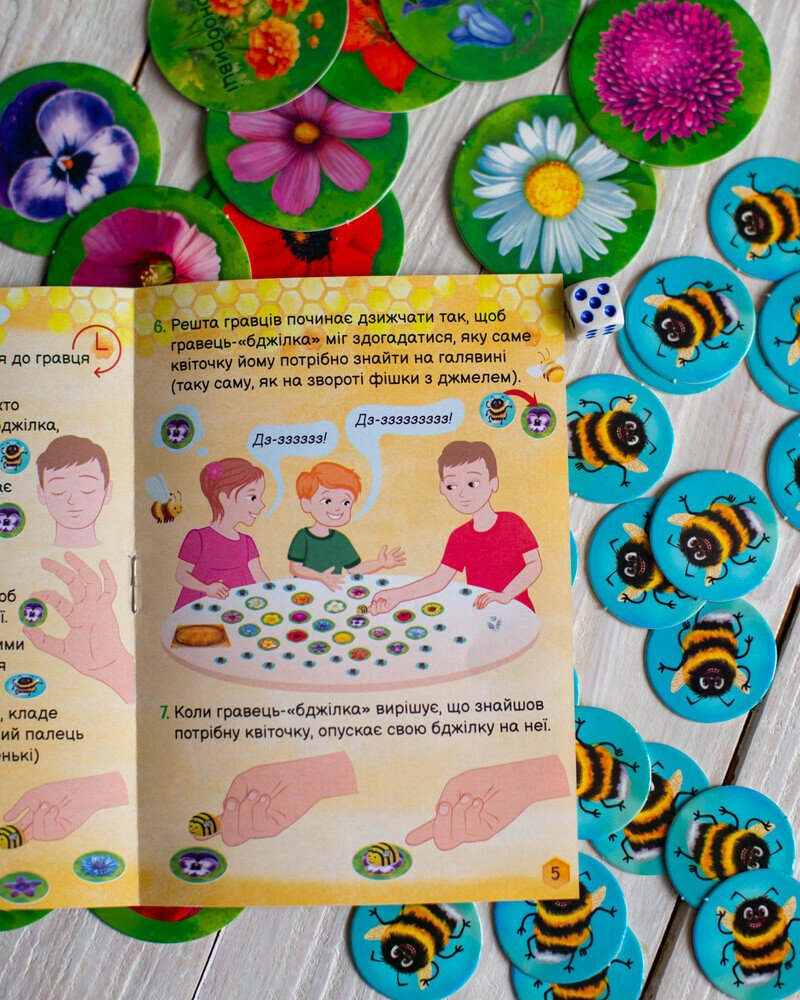 Головна особливість гри — командний кооперативний процес з заплющеними очима. Гравці не змагаються одне з одним, а взаємодіють через звуки, щоб допомогти бджілці знайти потрібну квіточку на галявині. Це ідеальна настільна гра для розвитку слуху, координації, логічного мислення й командної роботи.