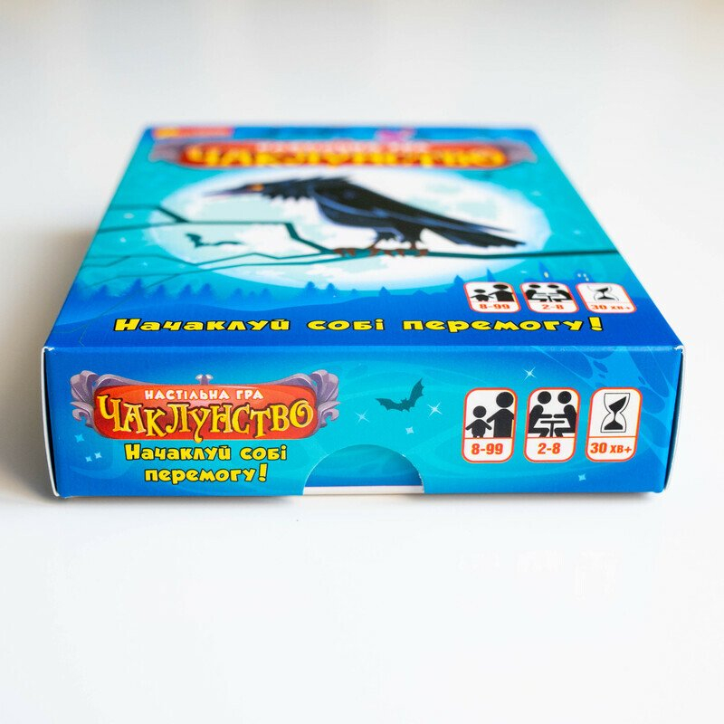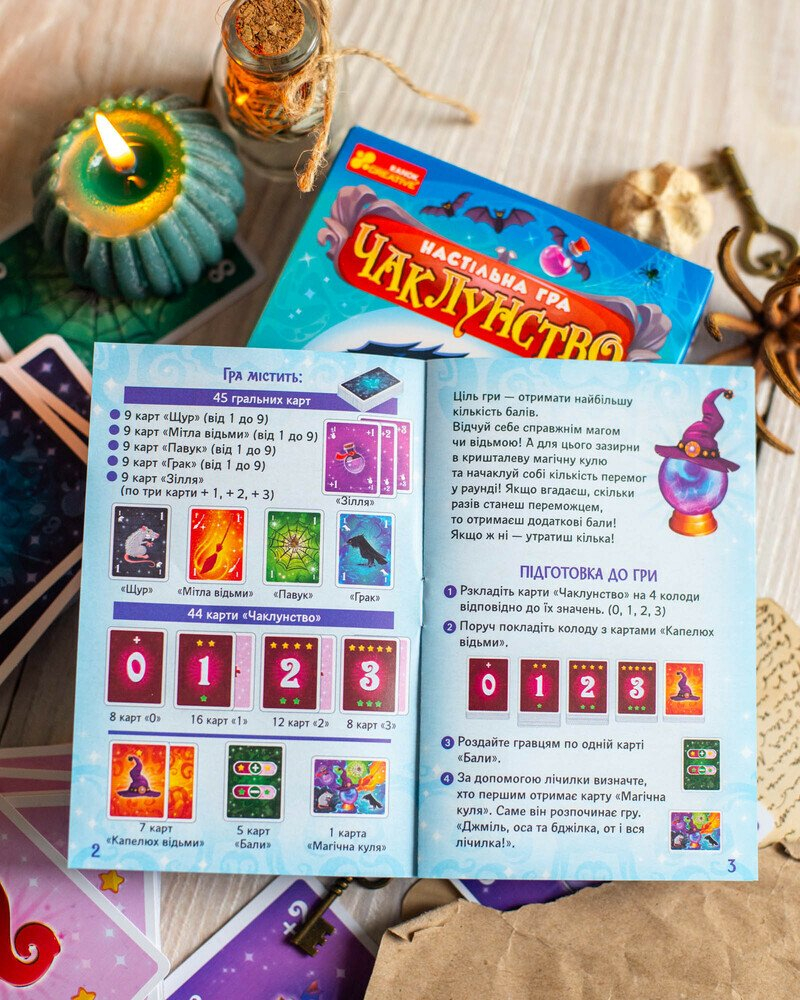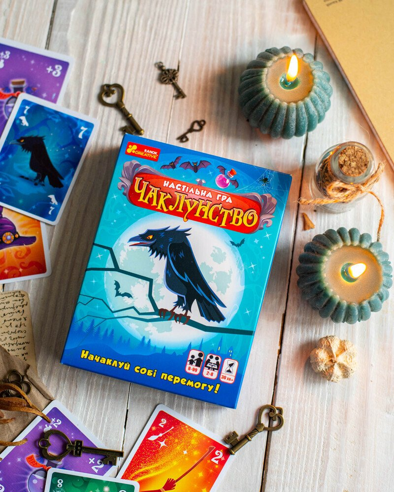 Настільна гра Чаклунство — чудова можливість урізноманітнити вечір, додати трохи чаклунства у звичні посиденьки та посмішок до спілкування з близькими. Спробуйте гру вже сьогодні та переконайтесь, наскільки захопливими бувають карткові пригоди.