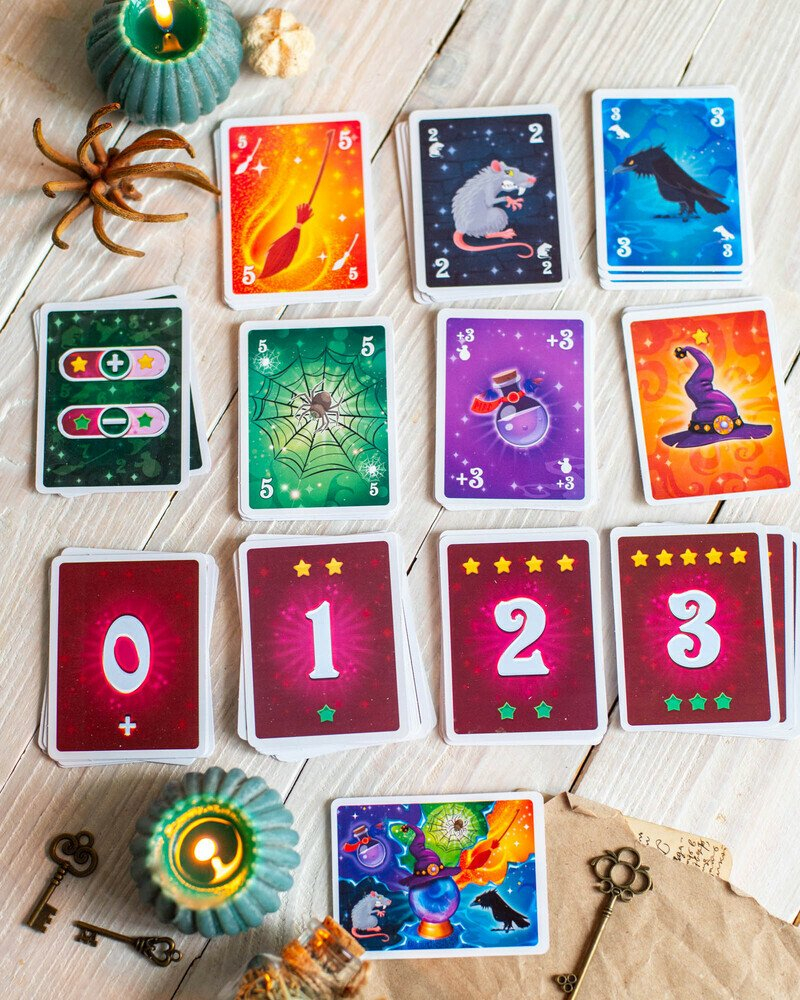 На початку кожного раунду гравці заглядають у магічну кулю та передбачають, скільки перемог зможуть здобути. Якщо прогноз точний — отримують бонусні бали. Але якщо помиляються, — втрачають очки! У хід ідуть карти зілля, капелюхи відьми, спеціальні карти чаклунства та творчий підхід кожного учасника.