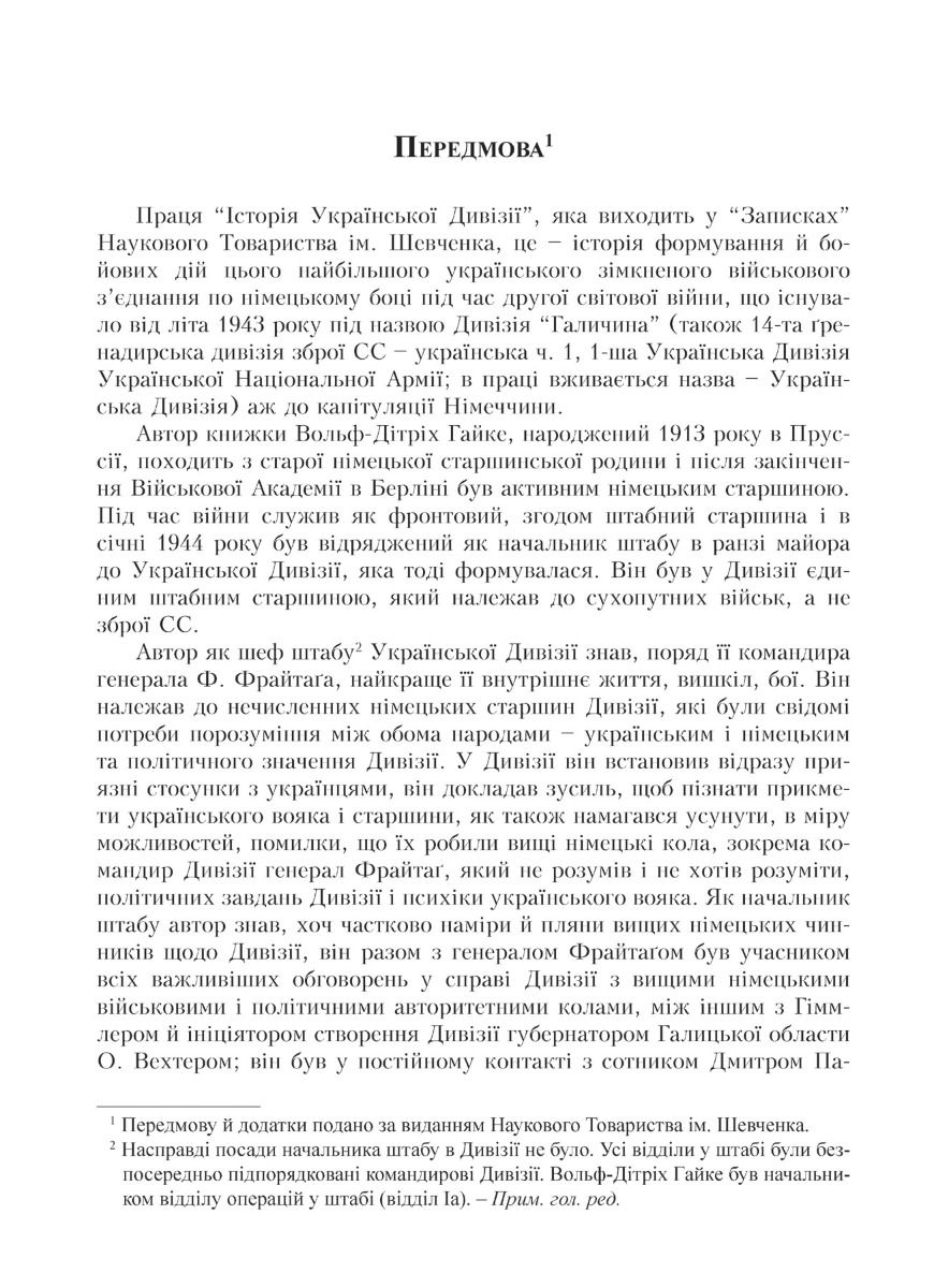 Книга «Українська Дивізія «Галичина». Історія формування і бойових дій у 1943–1945 роках» є унікальним свідченням німецького офіцера штабу Дивізії «Галичина». Вона містить докладний опис створення і бойових операцій українського військового формування у часи Другої світової війни.