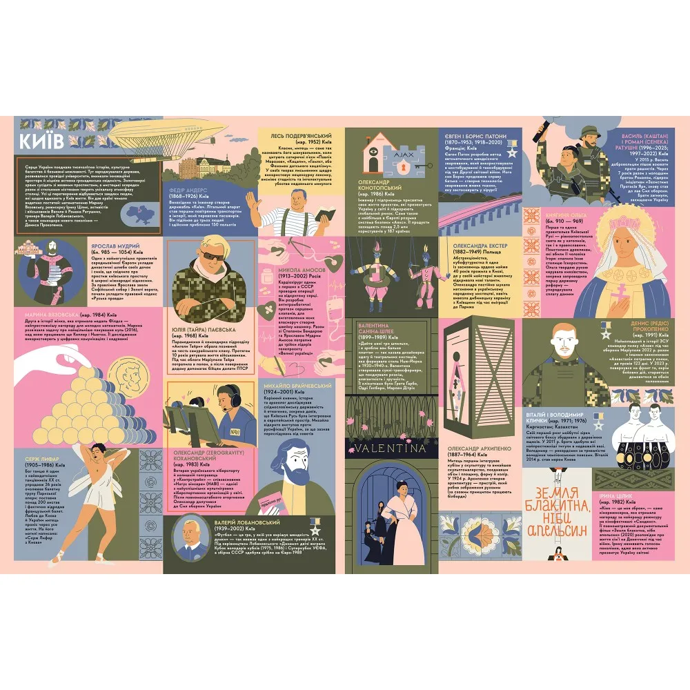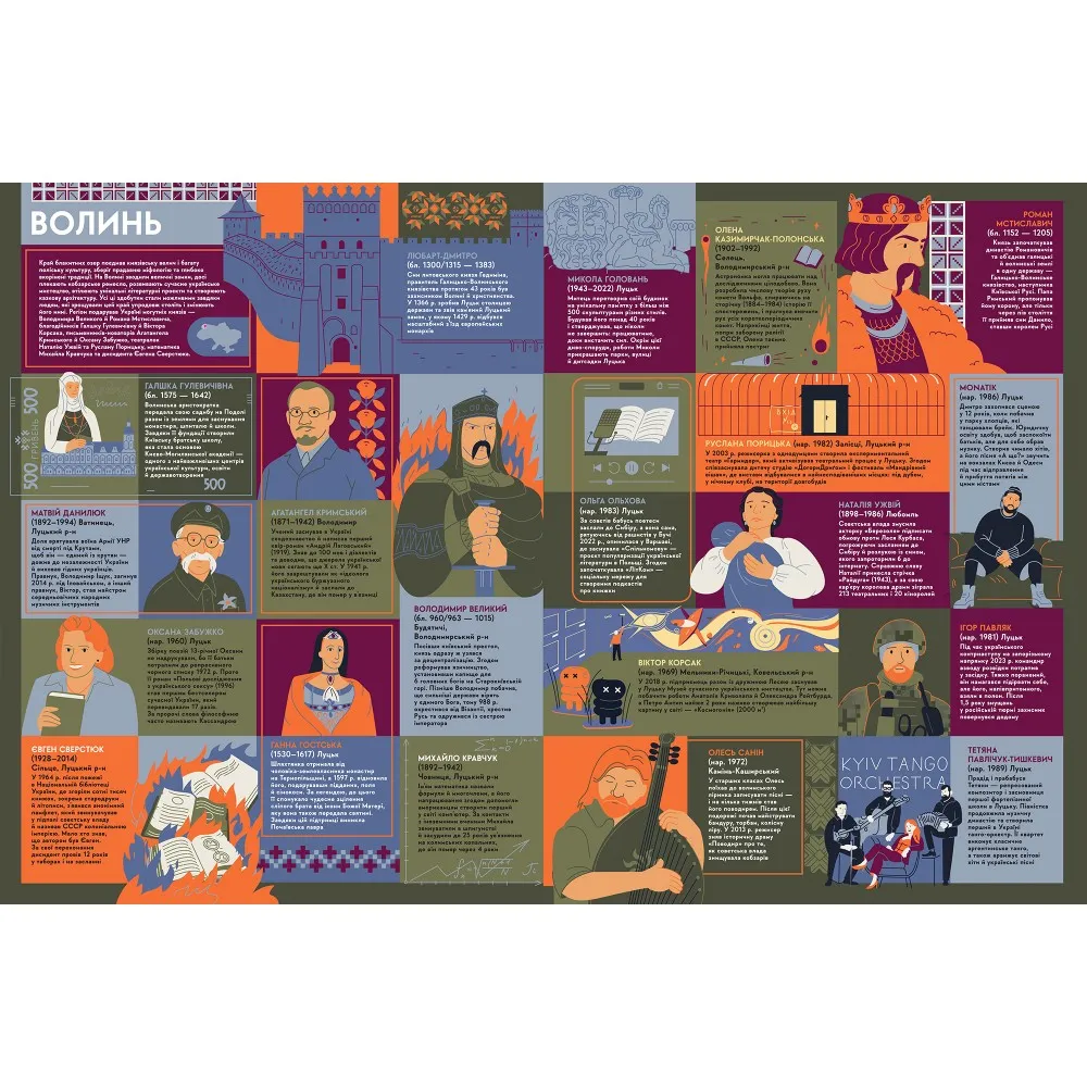 Книга-мандрівка. Українці знайомить із людьми, які, не зважаючи на окупацію, еміграцію, заборони та війну, не покидали свою справу. Вони:
