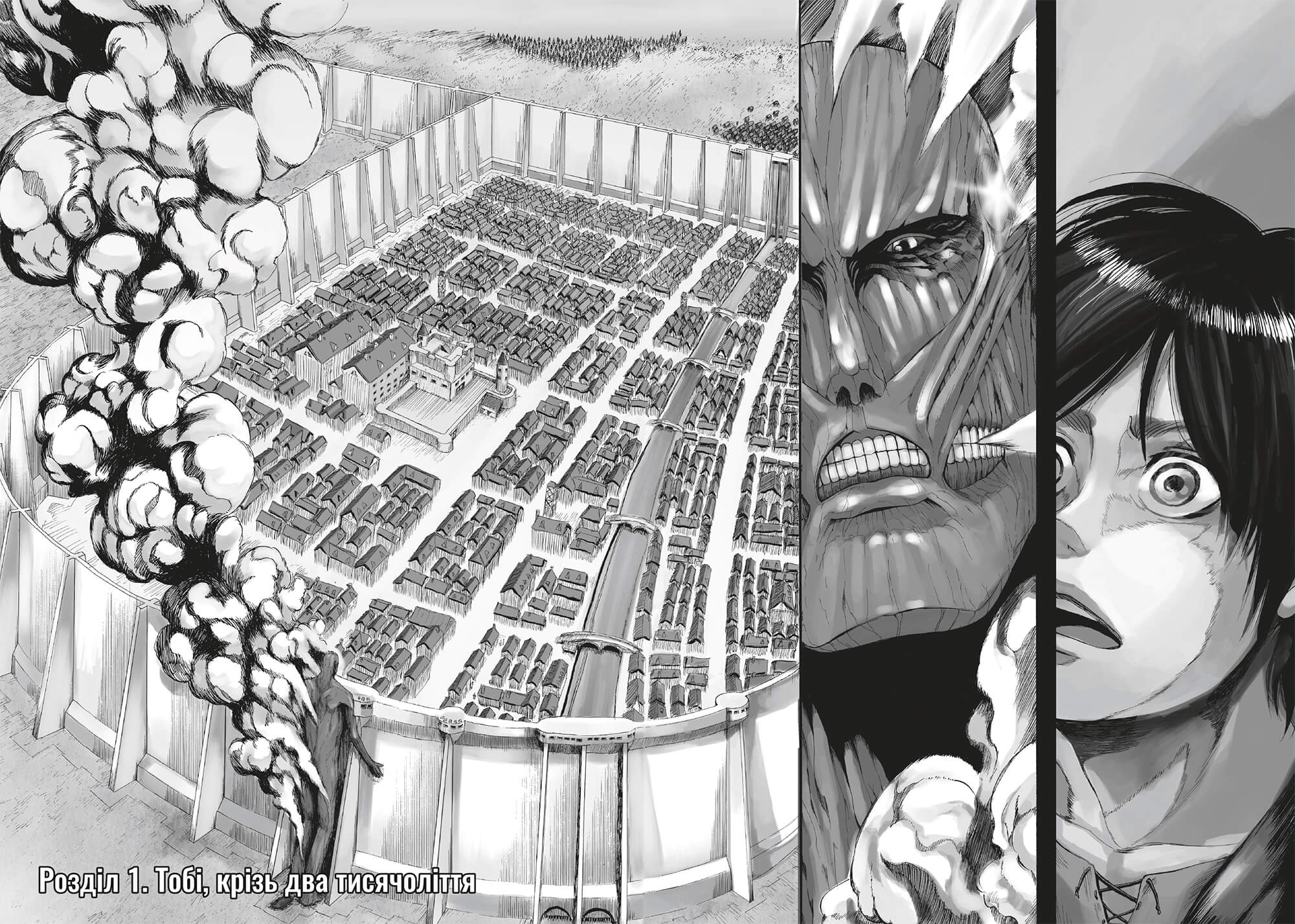 Події розгортаються у світі, що довгий час був нібито захищений від загрози, яка колись мало не знищила людство. Але спокій знову зруйнований, коли Колосальний титан прориває стіну, відкриваючи шлях монстрам. Місто падає, а головні герої починають свою відчайдушну боротьбу за виживання.