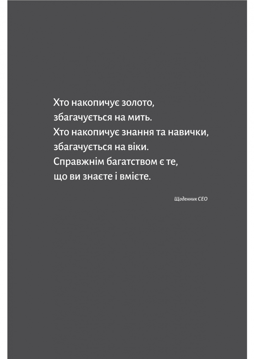 Якщо ви шукаєте книгу, що поєднує бізнес і людяність, а також відкриває шлях до розкриття потенціалу — Щоденник СЕО стане вашим ідеальним проводирем. Цей бестселер не залишить байдужим нікого, хто мріє досягти більшого.