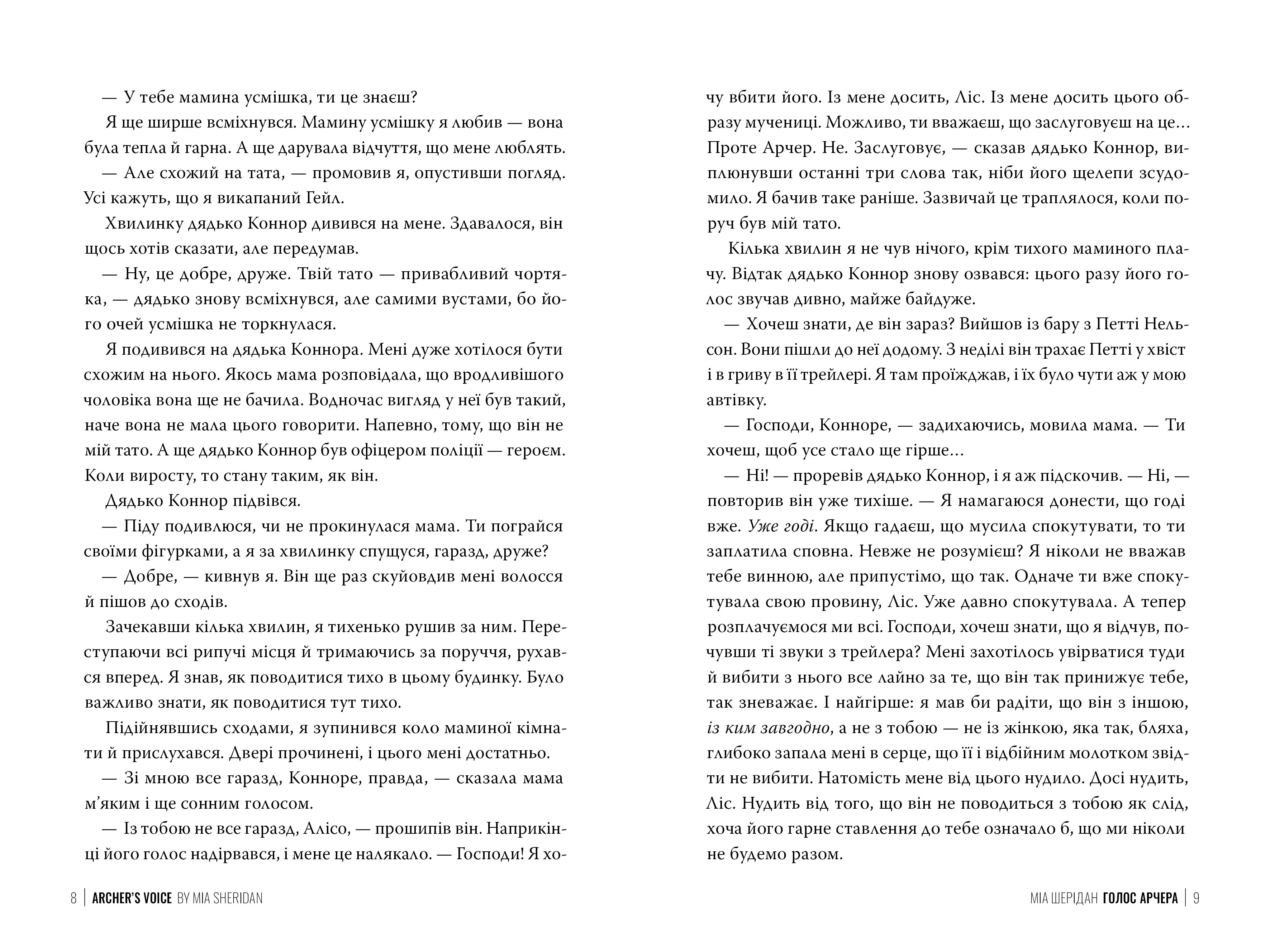 Голос Арчера — це емоційна історія, у якій переплелися біль утрат, сили зцілення любові та боротьба з минулим. Авторка Міа Шерідан створила зворушливий роман, що занурює читача у глибини душі своїх персонажів.