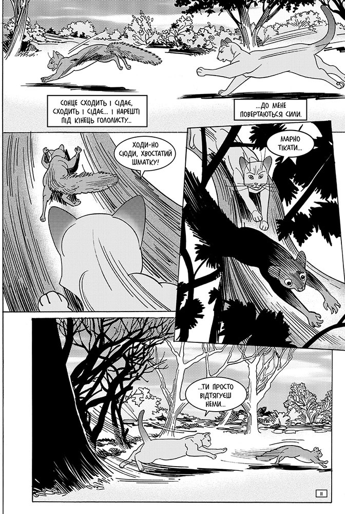 Саші весь час сниться Тигрозір. Попри страх, що він дізнається про кошенят і захоче їх забрати, молода самітниця повертається до лісу. Найголовніше — виростити малечу. Із настанням зимного гололиста Саші дедалі важче годувати родину. Може, кошенятам таки краще пристати до Клану, який їх захистить і навчить виживати? Може, саме тоді вони будуть у безпеці? Але в малечі власні плани — кошенята вирушають у місто Двоногів. І що з усього цього вийде — невідомо.
