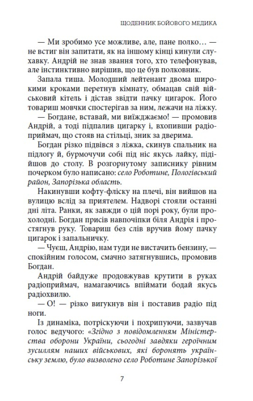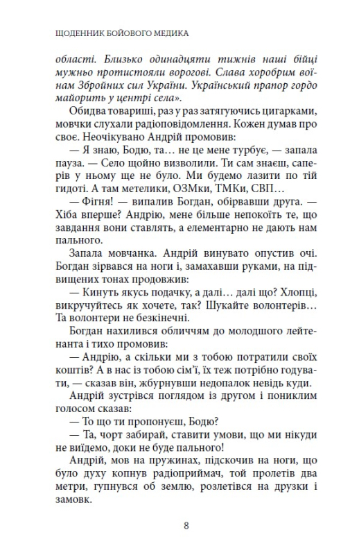 Цей щоденник — не просто хроніка подій. Це свідчення життя в окопах, емоцій, страхів, сподівань і незламності українського воїна-медика. Кожен запис — занурення в атмосферу бойових дій, у переживання людини, яка щодня ризикувала життям, рятуючи інших. Тут немає вигаданих персонажів — кожне слово має реального героя за ним.