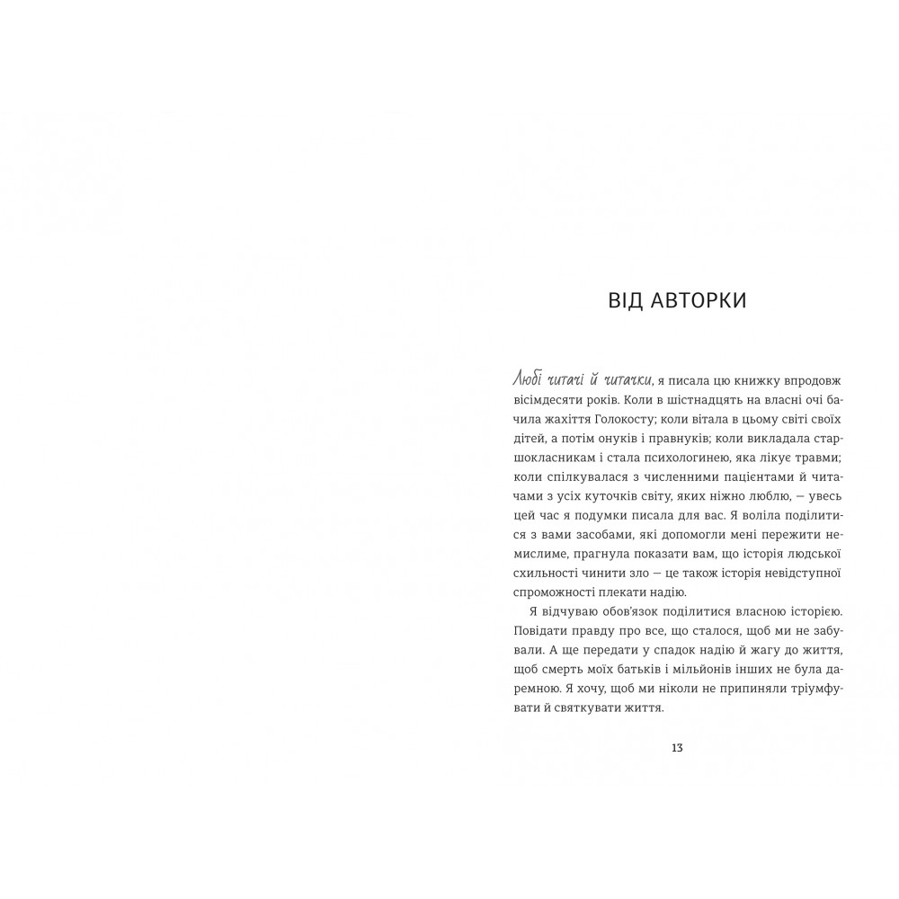 Еді — вправна танцівниця й гімнастка, яка сподівається взяти участь в Олімпійських іграх. Виснажливі тренування й турботи про власне місце в родині, де її вважають розумною, але недостатньо вродливою донькою, поглинають усю увагу Еді. Вона не помічає того, як змінюється світ, а життя в Угорщині 1943 року стає небезпечним для єврейської дівчини. Коли Еді вперше закохується, Європу охоплює війна, і її разом із батьками й сестрою Маґдою заганяють у потяг, що прямує до концентраційного табору. У найтемніші моменти надію Еді запалюють думки про коханого, його поцілунки, доторки, їхні спільні мрії... Аушвіц неймовірно жахливе місце, але попри нелюдські зовнішні обставини Едіт і Маґда вчаться віднаходити силу всередині себе, підтримують одна одну й нарешті стають вільними.