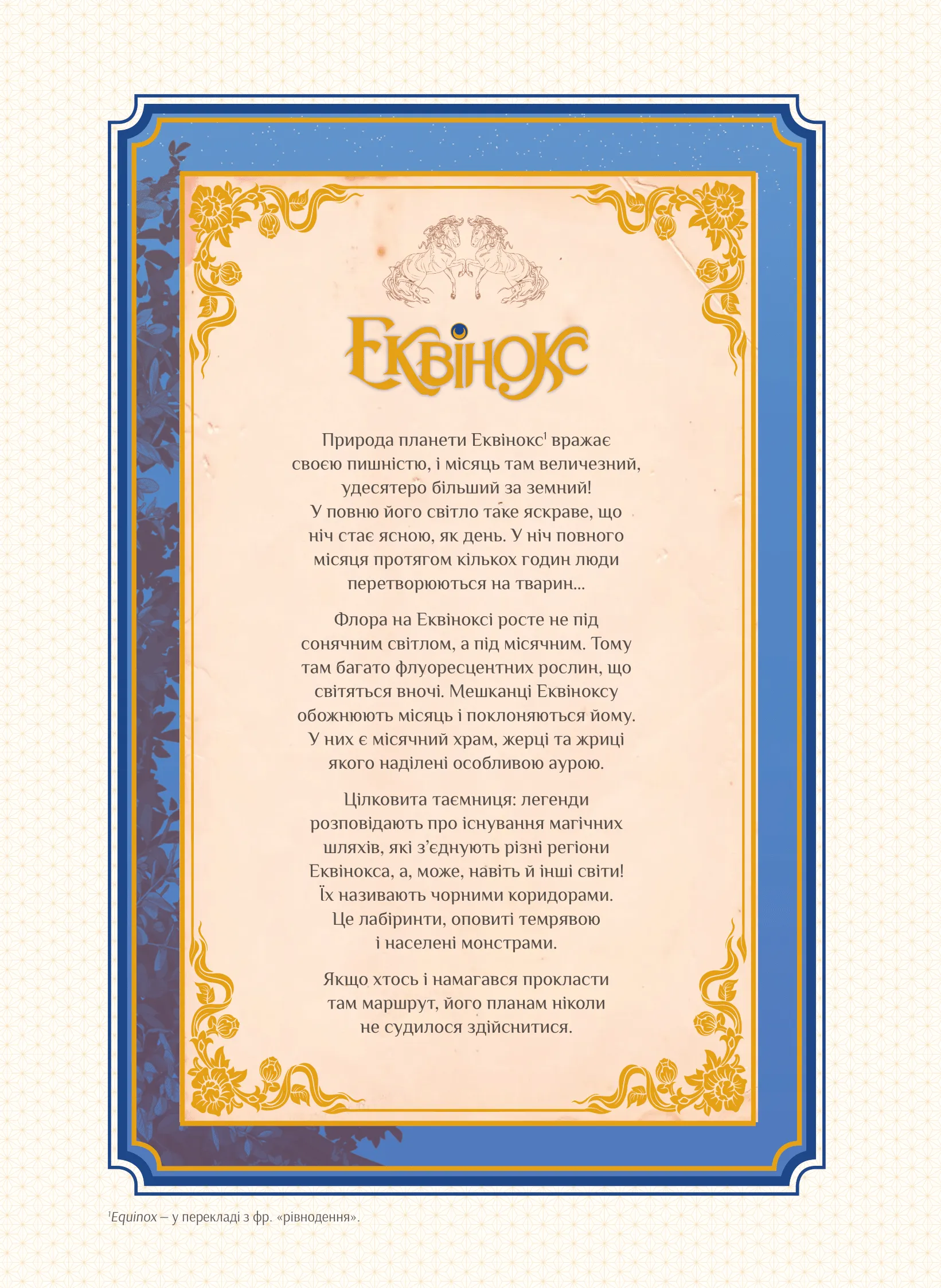 Автори створили чарівний універсум, де кольорові палітри підкреслюють емоційний настрій та розвиток сюжету. Вставки з описами порід коней допомагають краще зрозуміти світ Еквіноксу та формують унікальну екосистему фентезі-реальності.