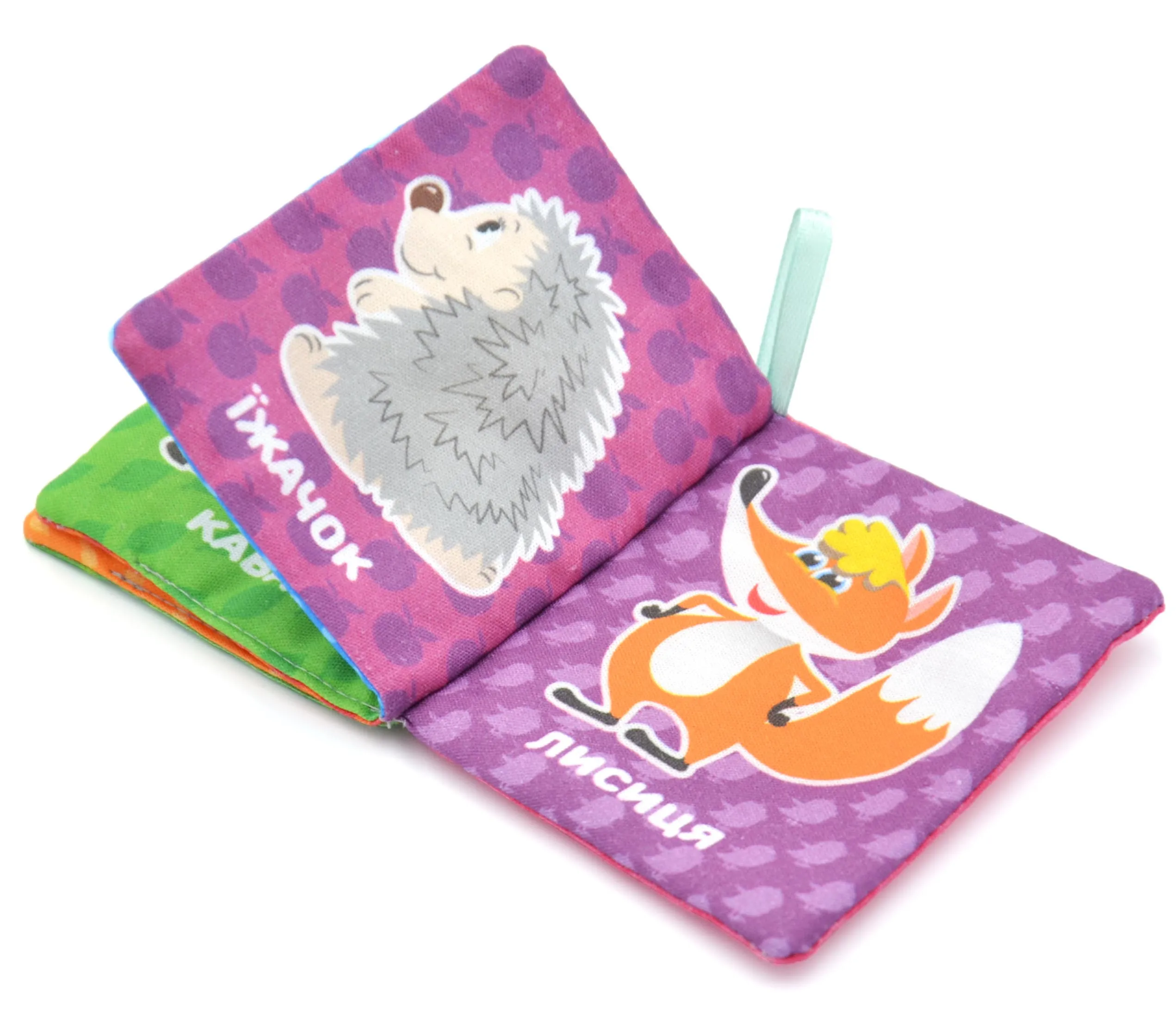 Книга знайомить дитину з мешканцями лісу. Яскраві ілюстрації, повторювані елементи та проста структура допомагають розвивати сенсорне сприйняття, дрібну моторику і пам’ять. Всі сторінки виготовлені у вигляді м'якого текстилю, що робить її не тільки цікавим, а й безпечним способом гри.