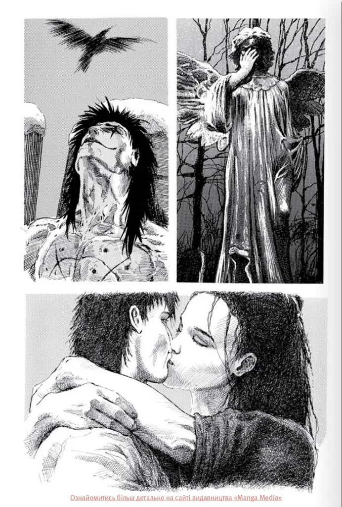 Глибокий зміст, унікальна атмосфера, вражаюча візуальна реалізація — ось що робить Ворон таким резонансним твором. Якщо ви шукаєте графічний роман, що залишає слід у душі, це саме той випадок. Створений із болю, цей твір дарує надію.