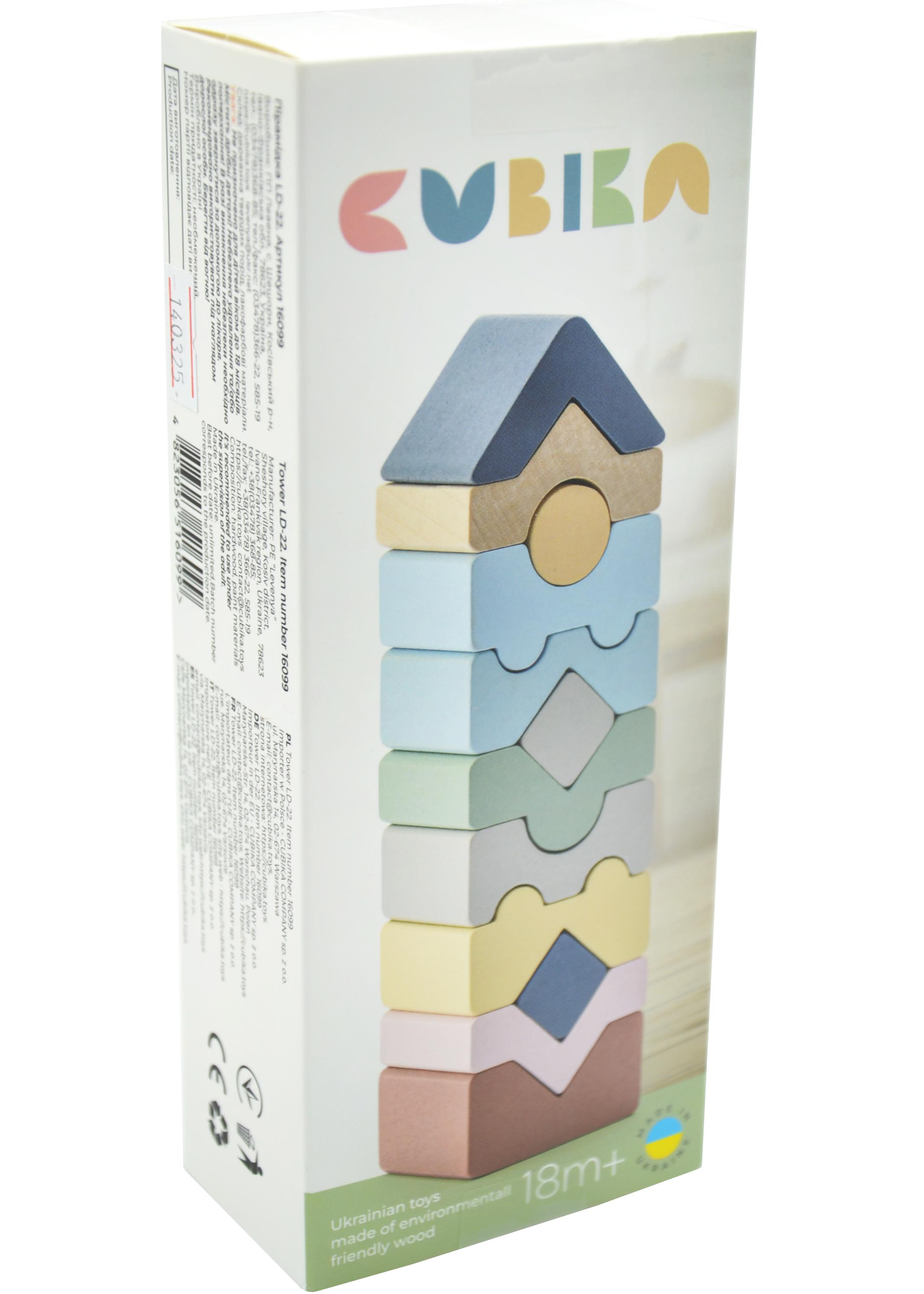 Пірамідка Cubika повністю безпечна для дітей, адже її виготовлено з натурального дерева, а фарби, якими вона покрита, не містять шкідливих речовин. Саме тому ця іграшка рекомендована для дітей віком від 18 місяців.