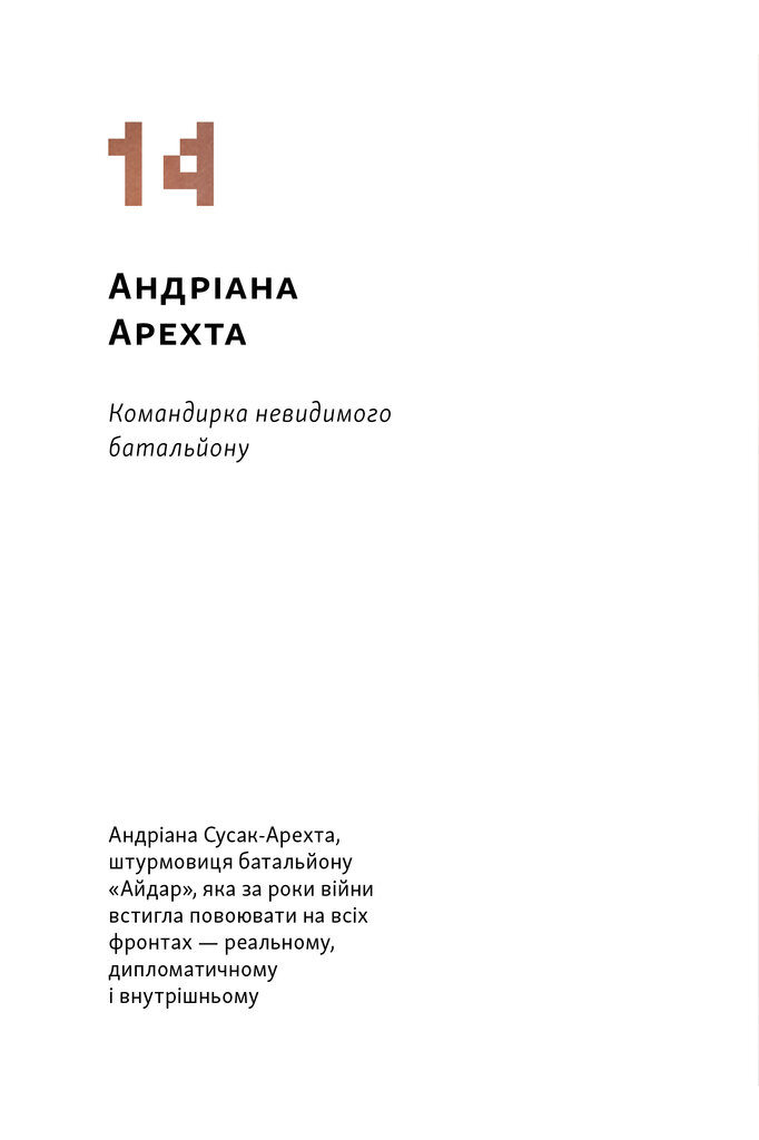 Це не роман і не спогади письменника. Це двадцять реальних історій людей: від командирів і танкістів до волонтерів і спортсменів. Читач зустріне у книзі: