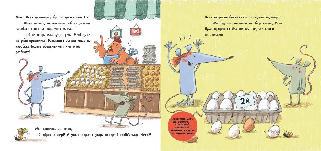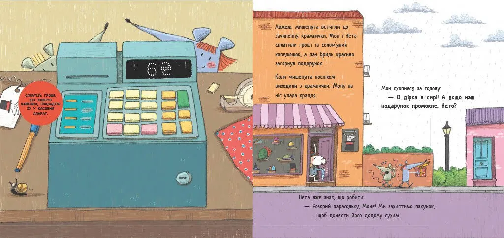 Інтерактивна книжка Перша книжка про гроші. Мон і Нета купують подарунок стане чудовим стартом у світі фінансової освіти для дошкільнят. Завдяки барвистій і цікавій історії про пригоди доброзичливих мишенят Мона і Нети, найменші читачі з легкістю дізнаються, що таке гроші та як ними користуватися.
