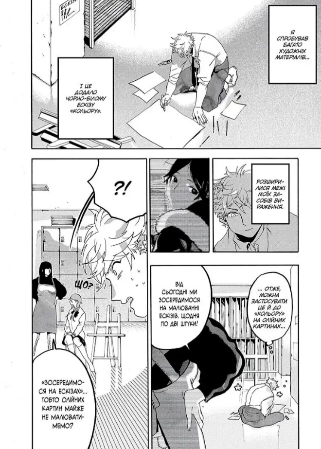 «Чи справді я хочу малювати?» «Чи варте це моїх зусиль?» Саме ці запитання повсякчас ставить собі Ятора в четвертому томі «Блакитного періоду», де розгортається справжня психологічна битва: талант проти сумнівів, прагнення проти страху.