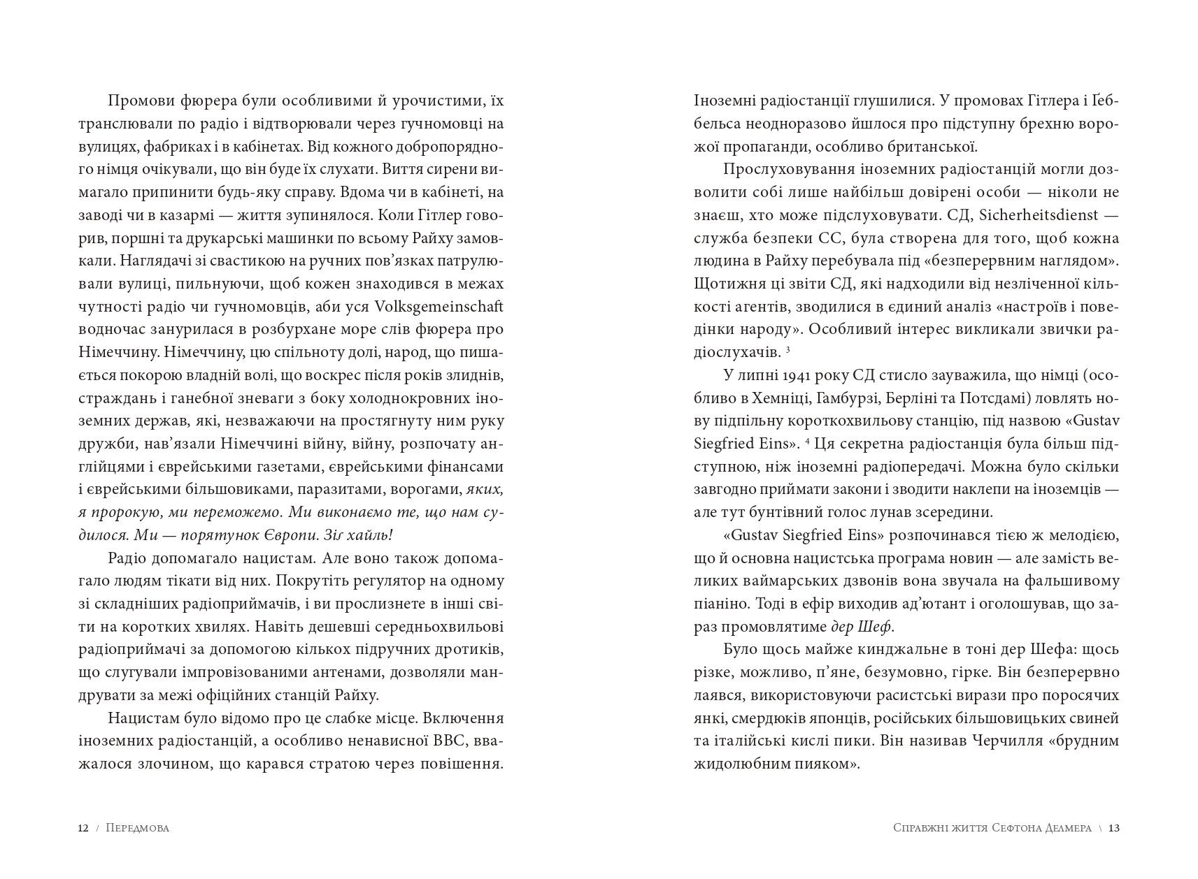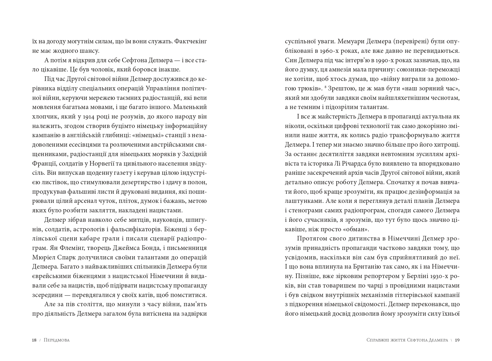 У центрі сюжету — досвід Сефтона Делмера, який організовував фейкові радіостанції, надсилав ворожим солдатам дезінформаційні листівки та створював інформаційні спецоперації із психологічного впливу. Померанцев подає ці історії не лише як біографію, але як аналіз технологій впливу на масову свідомість у критичних умовах світової війни.