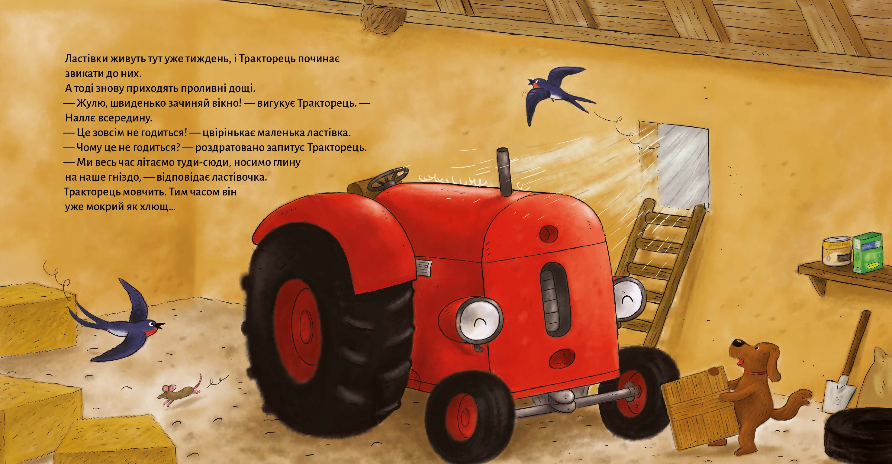 Весна повертається разом з ластівками, що прилітають із далеких країв. Вони шукають безпечне місце, аби звити гніздо. І саме сарай тракторця стає новим домом для маленької пташиної родини. Спершу тракторець не в захваті — йому не подобається, що хтось втручається у його простір. Проте знайомство з одним із ластів’ят змінює все. Замість роздратування приходить бажання допомогти і піклуватись.