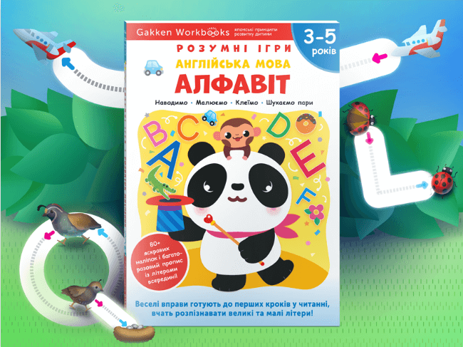 Шлях до знань пролягає лише через задоволення — тому завдання побудовані так, щоб малюку завжди було цікаво.