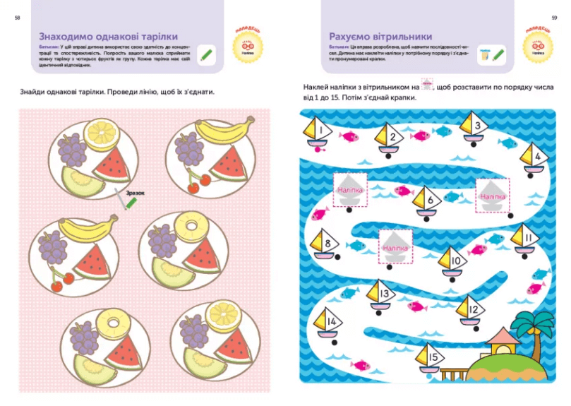 У вправах книжки «Gakken. Розумні ігри. Побудова навичок. 4–6 років» дитині пропонується: