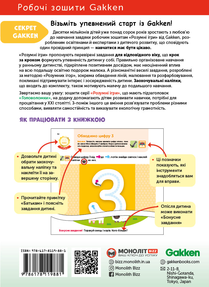 Gakken Gakken. Розумні ігри. Лічба. 2–4 роки + наліпки і багаторазові сторінки для малювання