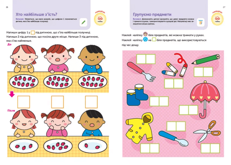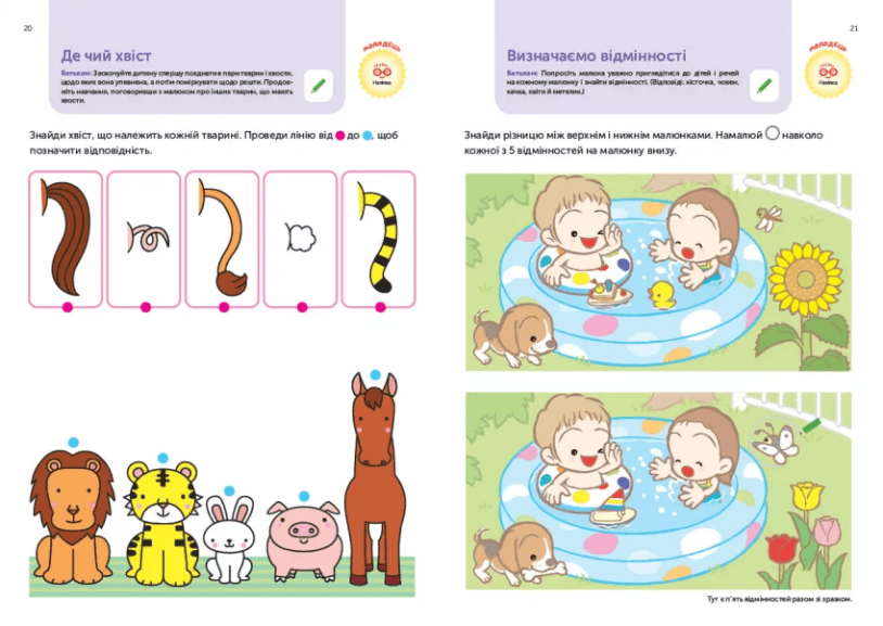 Працюючи з цією книжкою, ваш малюк попрактикується складати пазли, порівнювати предмети, знаходити спільне й відмінне, бачити характерні ознаки предметів. Веселі вправи допоможуть легко розвинути логічне і творче мислення та розширити словниковий запас!