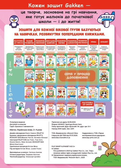 Gakken. Розумні ігри. Українська мова. Абетка. 2–4 роки + наліпки і багаторазові сторінки для малюва