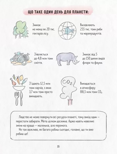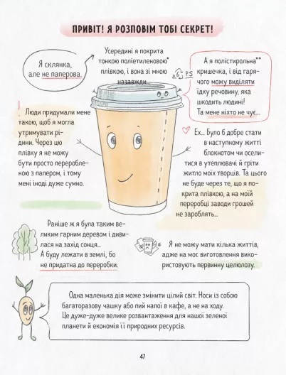 Книжка розповість про найпростіші побутові предмети, з якими ми стикаємося щодня, але не знаємо їхні «одноразові» секрети, а також дасть поради, як простими і легкими діями кожен із нас може зробити особистий внесок в збереження планети.
