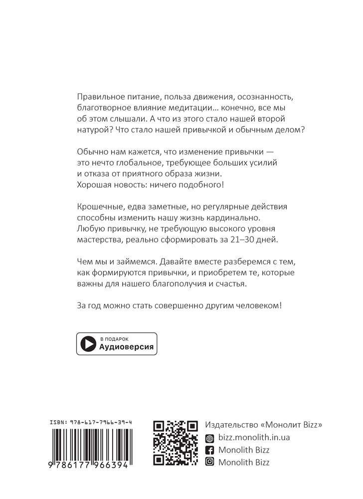 Ця збірка саммарі з 15 світових бестселерів допоможе освоїти 9 нових звичок, зміцнить силу волі та сформує механізм зміни себе.
