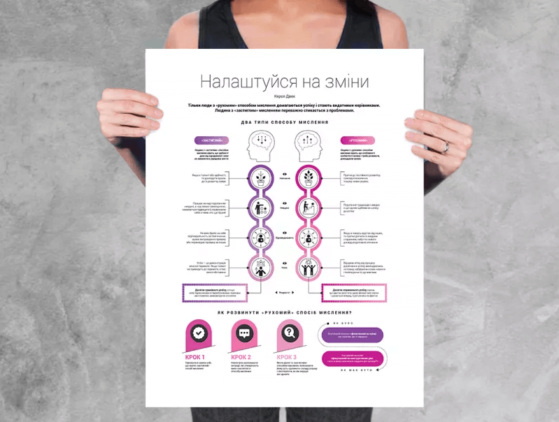 Неоціненний стислий виклад 12 книжок-бестселерів про розвиток найважливіших гнучких навичок у візуальному форматі.