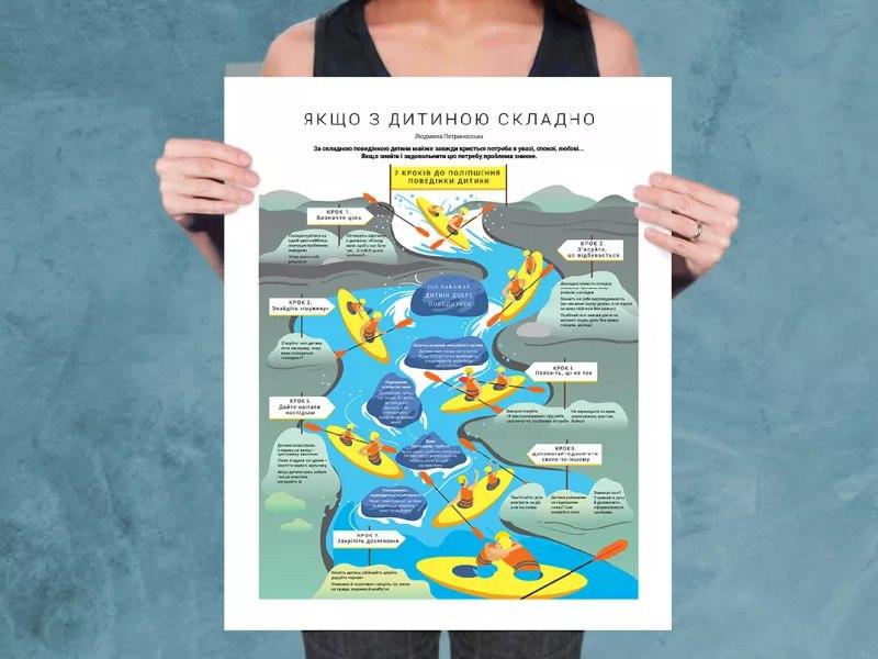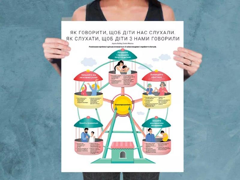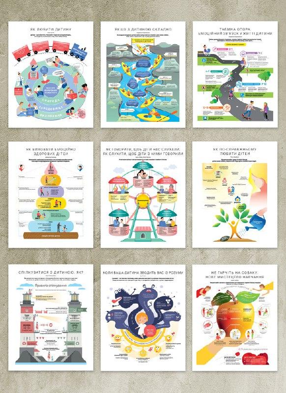 10 важливих інфографік, створених на базі книжок-бестселерів, про те, як будувати стосунки з дітьми і ростити їх щасливими й успішними. Цей унікальний комплект коуч-плакатів складається з 10 інфографік, які допоможуть мамам і татам краще зрозуміти своїх дітей, стати їм ближчими. Плакати забезпечать набором інструментів для вирішення безлічі питань, що виникають при вихованні дитини. Ми, батьки, спілкуємося зі своїми дітьми в проміжках між своєю роботою, їхніми школою, спортивними секціями та гуртками. Не завжди все буває легко: трапляються і сварки, і скандали. Тотальний карантин загострив ситуацію. Ми спробували бути поруч із дітьми в замкнутому просторі 24/7. І відразу одним із нагальних стало запитання: «Як спілкуватися?». Як спілкуватися, якщо ми різні і хочемо різного — одночасно? Як спілкуватися, якщо ми зайняті, а дітям потрібна нашу увага — просто зараз? Як спілкуватися, якщо ми замкнені в чотирьох стінах? Чи нова ця проблема? Ні. Просто в стресовій ситуації, що склалася, як ніколи важливо було підтримати і зрозуміти дітей, подивитися на обставини збоку і підкоригувати емоційну атмосферу в домі. Але щоб надати дітям таку підтримку, допомоги потребували ми самі. Як у правилах безпеки в літаках: «Спочатку надіньте кисневу маску на себе, потім — на дитину». Та й без карантину для багатьох сімей питання гармонійного спілкування з дітьми залишається актуальним. Цей комплект коуч-плакатів — своєрідна киснева маска для батьків. Запитаєте чому? Відповідь проста: Коуч-плакати включають 10 інфографік, візуалізуючих методики виховання, що стали класикою в світі педагогіки і психології; Кожна інфографіка побудована на основі світового бестселера і доносить ідею набагато швидше, ніж книжка; Сумарно інфографіки розширюють ваш світогляд і вчать, як виховувати дитину так, щоб вона зростала цілісною і щасливою особистістю. Фундаментом для інфографік стали такі книжки-бестселери: 1. «Як любити дитину» Януша Корчака. 2. «Таємна опора. Емоційний зв'язок у житті дитини» Людмили Петрановської. 3. «Як по-справжньому любити свою дитину» Росса Кемпбелла. 4. «Спілкуватися з дитиною. Як?» Юлії Гіппенрейтер. 5. «Як виховати емоційно здорових дітей» Джеральда Ньюмарка. 6. «Не гарчіть на собаку: нове мистецтво навчання» Карен Прайор. 7. «Правила батьківства» Річарда Темплара. 8. «Коли ваша дитина зводить вас з розуму» Еди Ле Шан. 9. «Як говорити, щоб діти нас слухали. Як слухати, щоб діти з нами говорили» Адель Фабер і Елейн Мазліш. 10. «Якщо з дитиною складно» Людмили Петрановської. Візьміть на озброєння знання, які допоможуть вам уникнути помилок у вихованні, а дитині — вирости щасливою й успішною.