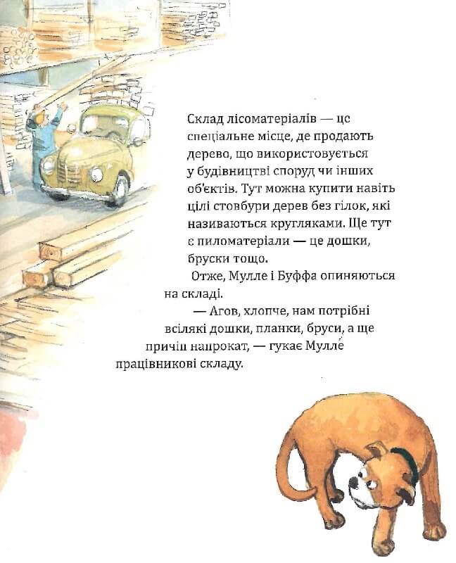 А що буде далі, дізнаєтеся, прочитавши разом зі своїми дітками надзвичайно цікаву книжечку з яскравими ілюстраціями — «Мулле Мек будує човен». Оповідання про вірних друзів, Мулле Мека і боксерку Буффу, неймовірно популярні у Скандинавії, а самі вони не менш відомі, ніж персонажі чарівливих казок Астрід Ліндгрен. Захопливої вам подорожі в добрий світ дитинства!