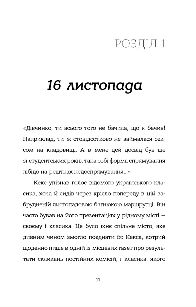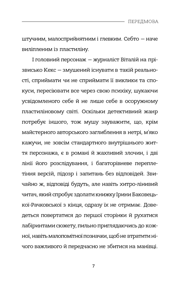 Чим далі заходить розслідування, тим краще для читача відкривається світ головного персонажа з його спостереженнями та внутрішніми переживаннями. Кексові доведеться пройти важкий шлях, щоб розплутати справу, бо, тільки знайшовши вбивцю, він зуміє пізнати себе.