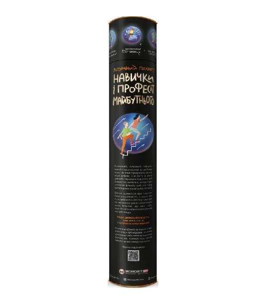 Величезний, яскравий, інформативний і ретельно продуманий плакат не лише прикрасить кімнату вашої дитини, а й дозволить їй здійснити справжню подорож у часі, зазирнути у майбутнє, щоби вже зараз зробити доленосний вибір професії! Дитина дізнається про перспективні спеціальності, а також про те, як вибрати найкращу саме для неї, які знання, риси й навички для цього потрібні, що таке софт-, хард- та метаскіли та як побудувати кар’єрні сходи.