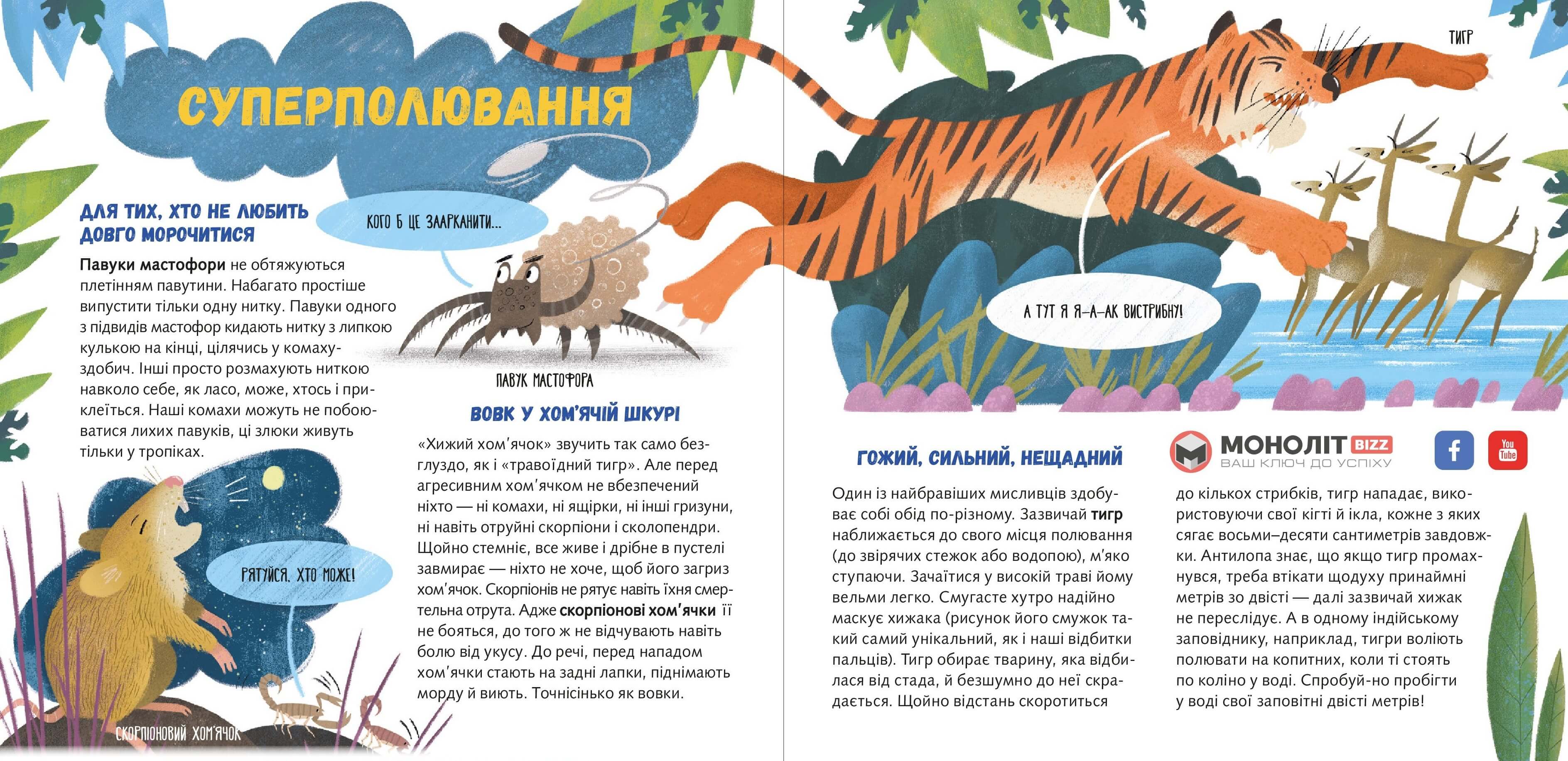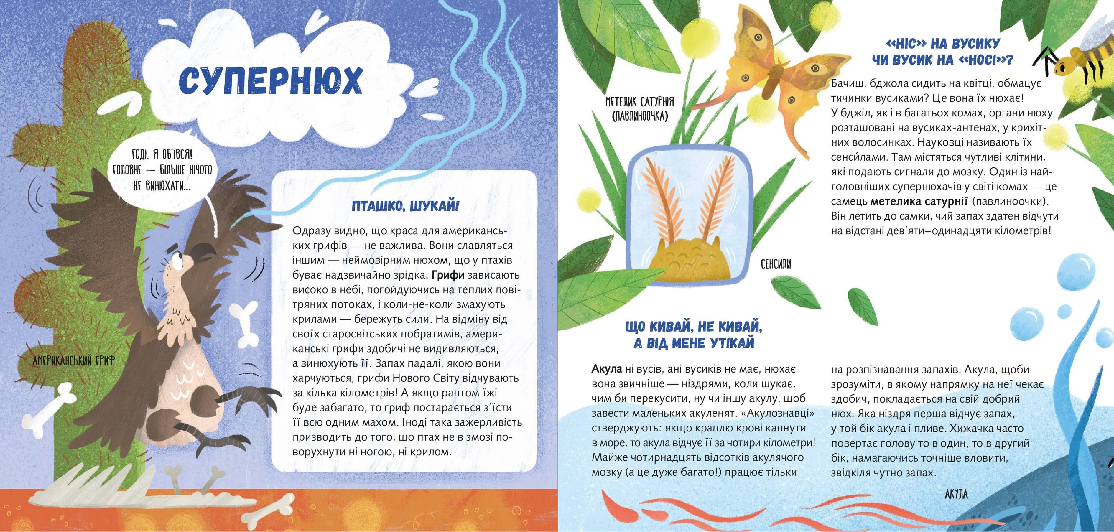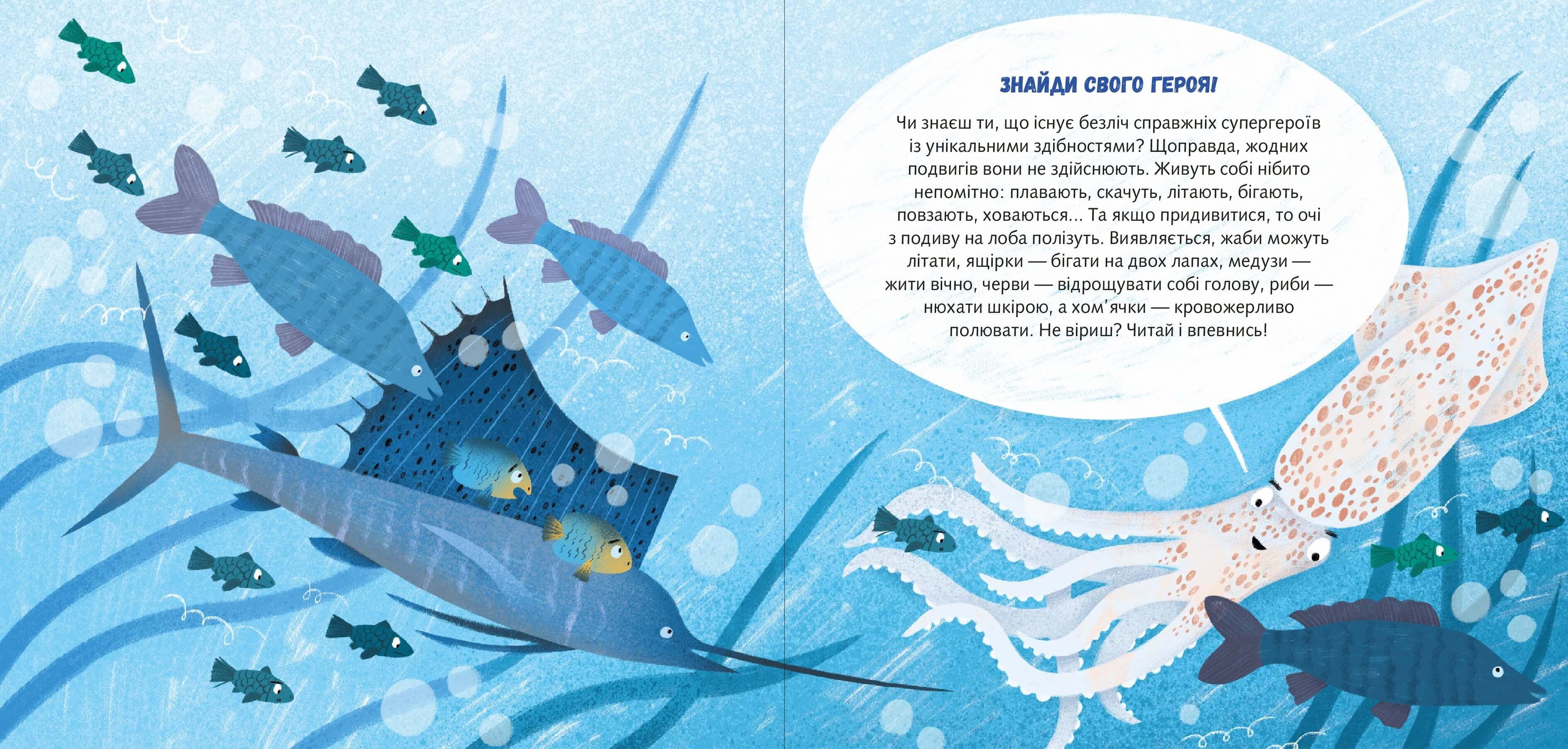 Любиш читати про відважних героїв, яким до снаги все на світі? Хтось із них уміє випускати липку павутину, хтось легко обганяє автомобіль, у когось на ногах присоски, і він без зусиль піднімається на найкрутіші скелі… Скажеш — фантастика? Тільки не у світі тварин, бо всі ці суперздібності для них звичайна річ!