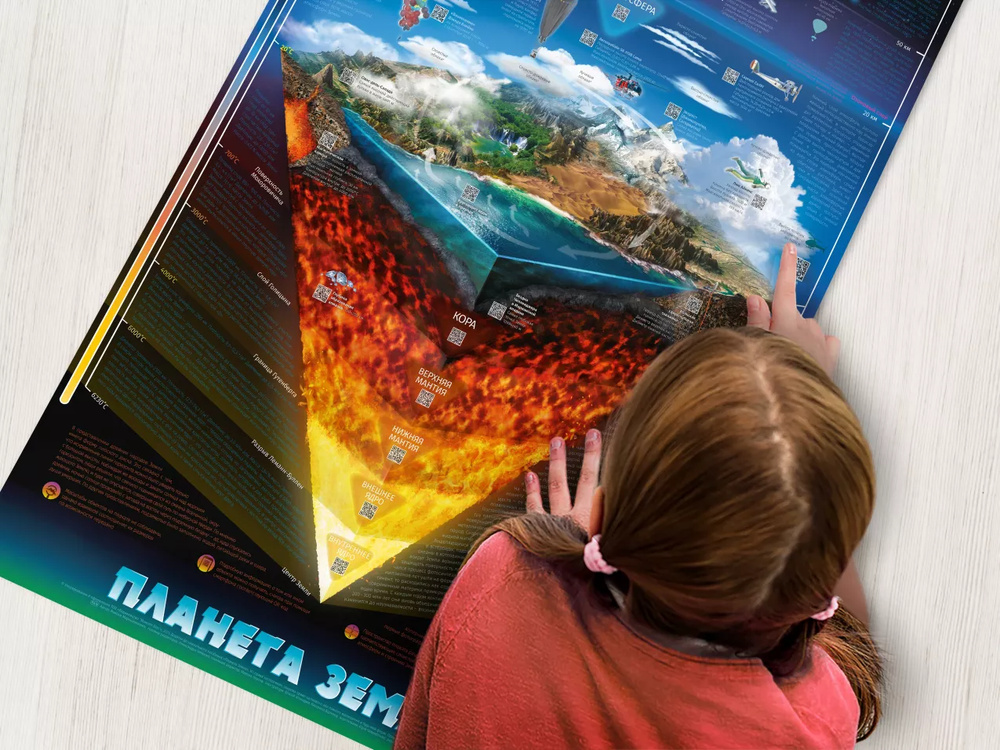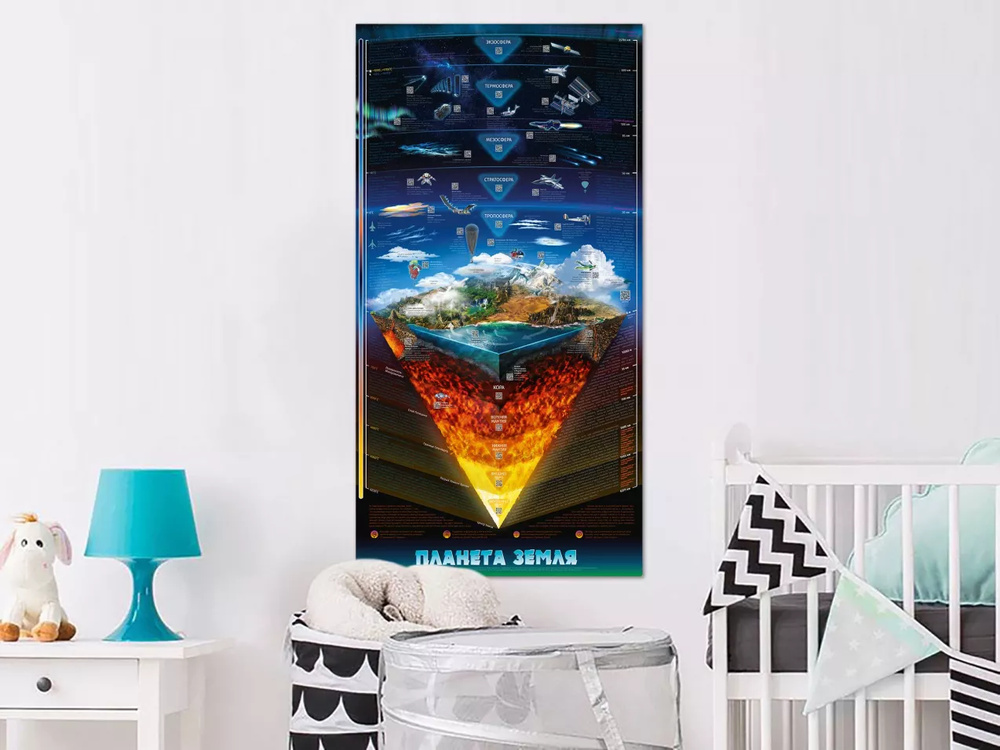 Унікальний розумний плакат здатний надовго привернути увагу будь-якої дитини. Адже подорож від центру земної кулі до найвищих верств атмосфери — справжня пригода для молодого дослідника, яка не просто захоплює, а й навчає.
