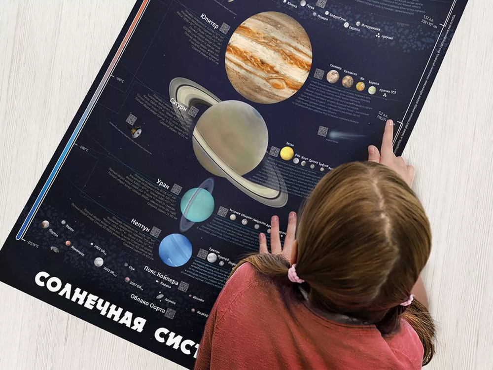 Унікальний розумний плакат перетворить будь-яку дитину на експерта з будови Сонячної з системи . Усім давно відомо, що змусити дітей вчитися – непросте завдання! Набагато ефективніше зробити те щоб сам процес пізнання захоплював з головою. Саме цього ми й досягаємо! Величезний, яскравий, інформативний та чітко структурований настінний плакат зробить те, про що ще вчора Ви могли лише мріяти. Ваша дитина полюбить космос!